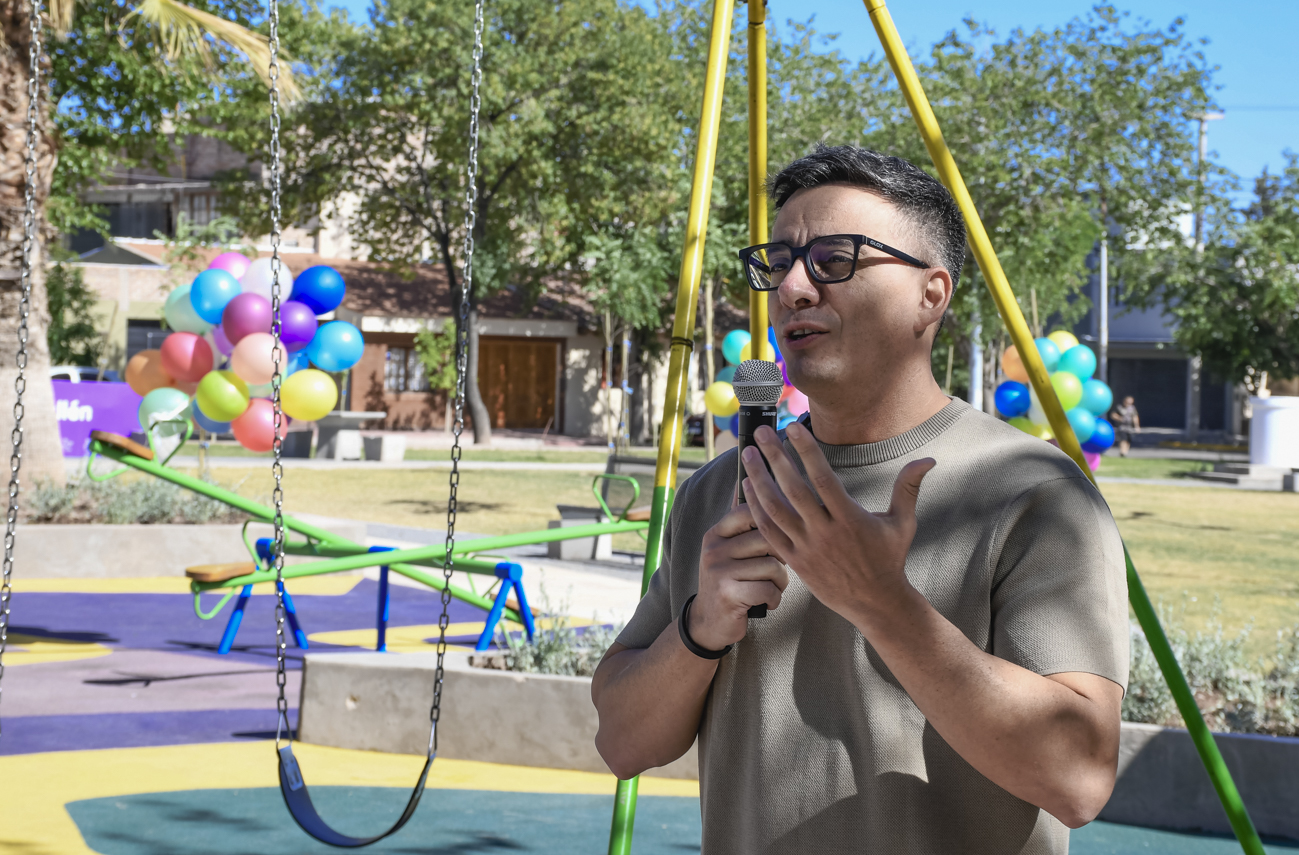 La obra es parte del programa Entornos Escolares Seguros, por lo que los trabajos también alcanzaron a la escuela Martina Chapanay que se encuentra frente a la plaza. Nuevo sistema de iluminación y riego. Espacios para el disfrute los más chicos y para la actividad deportiva.