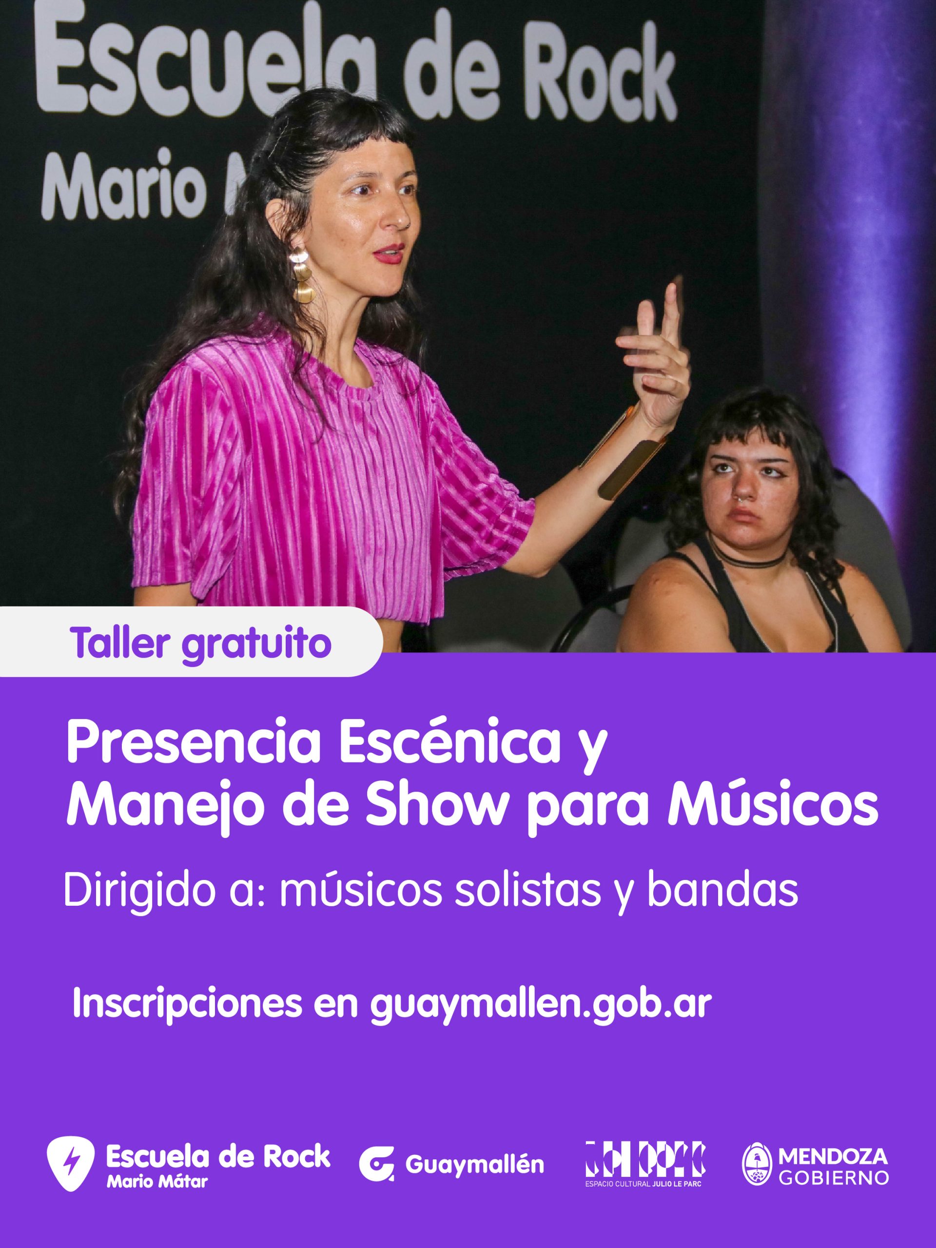 La Dirección de Cultura y Turismo invita a músicos solistas y bandas a inscribirse en el taller “Presencia escénica y manejo de show para músicos”, una propuesta de formación pensada para potenciar la performance en vivo, fortalecer la identidad artística y lograr una conexión auténtica con el público. La actividad comenzará el 8 de mayo y tendrá lugar los días viernes, de 13 a 15h, en el auditorio de la Escuela Municipal de Rock Mario Mátar (exterior del Espacio Cultural Julio Le Parc).