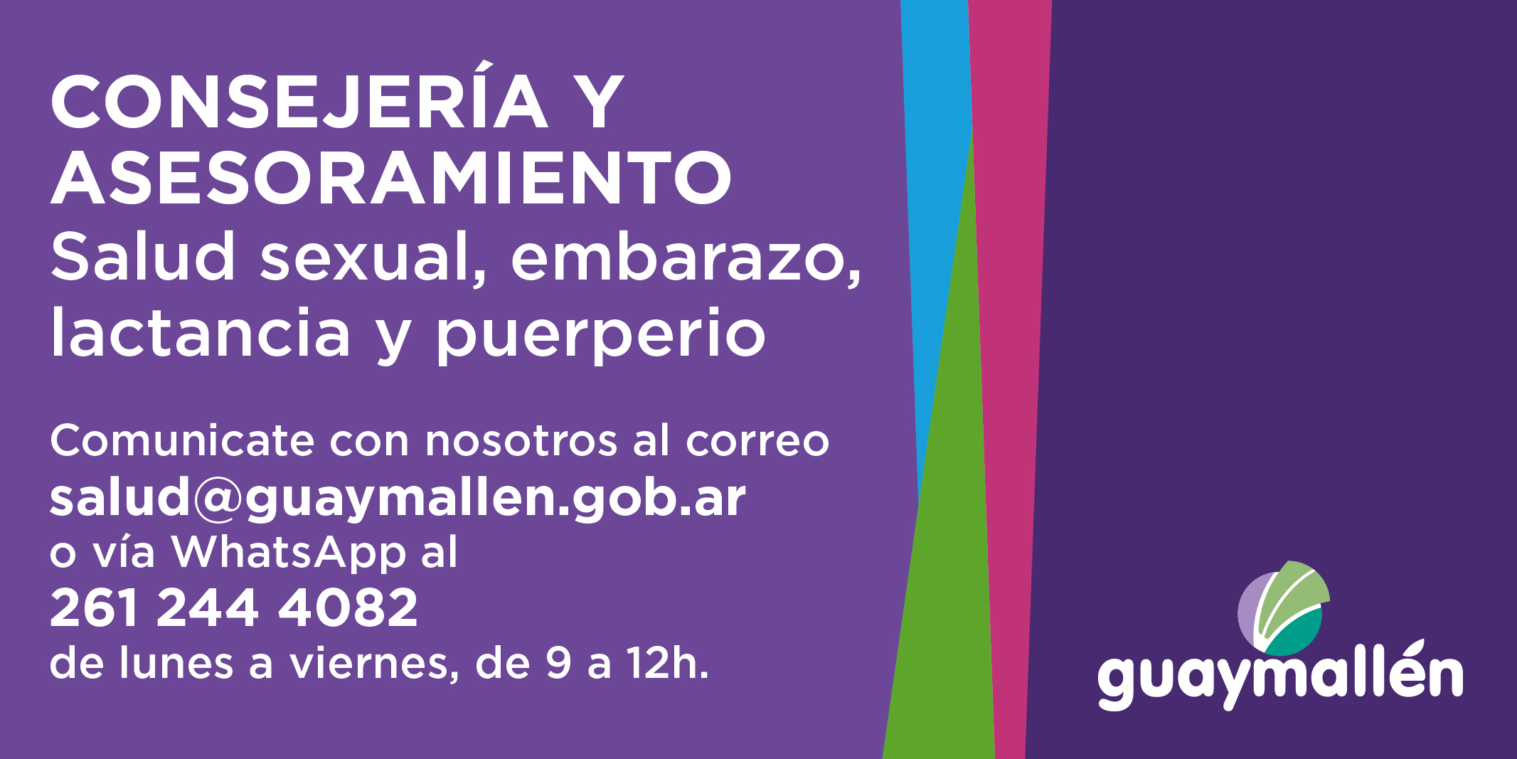 Para que un profesional se comunique, los interesados deben enviar su contacto al mail salud@guaymallen.gob.ar o vía WhatsApp al teléfono 2612444082, de lunes a viernes, de 9 a 12.