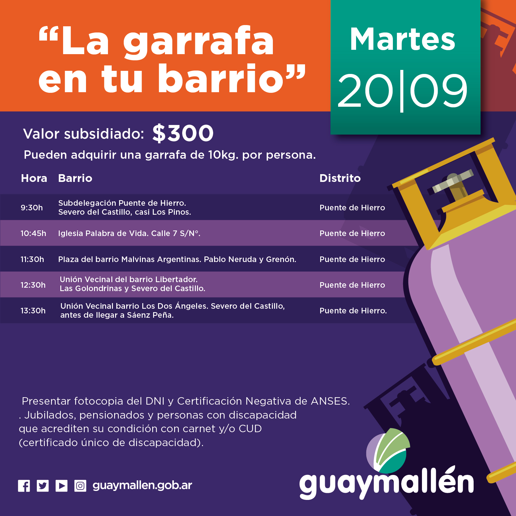 Teniendo en cuenta que la provisión de gas envasado con subsidio municipal se vio limitada por disposiciones de la Secretaría de Energía de la Nación, al fijar cupos de recarga inferiores a la demanda de los sectores más vulnerables; las familias de Guaymallén podrán adquirir solo una garrafa subsidiada de 10 kg. a $300.