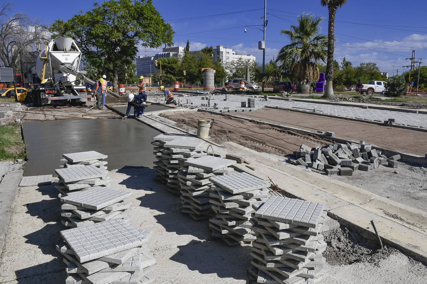 • Renovación de calzadas y veredas existentes con adoquines y baldosas de granito para consolidar un nuevo perfil, eliminando desniveles y haciendo más fluida la circulación peatonal. Estos trabajos generarán un gran “atrio” que jerarquiza a la Terminal de Ómnibus.