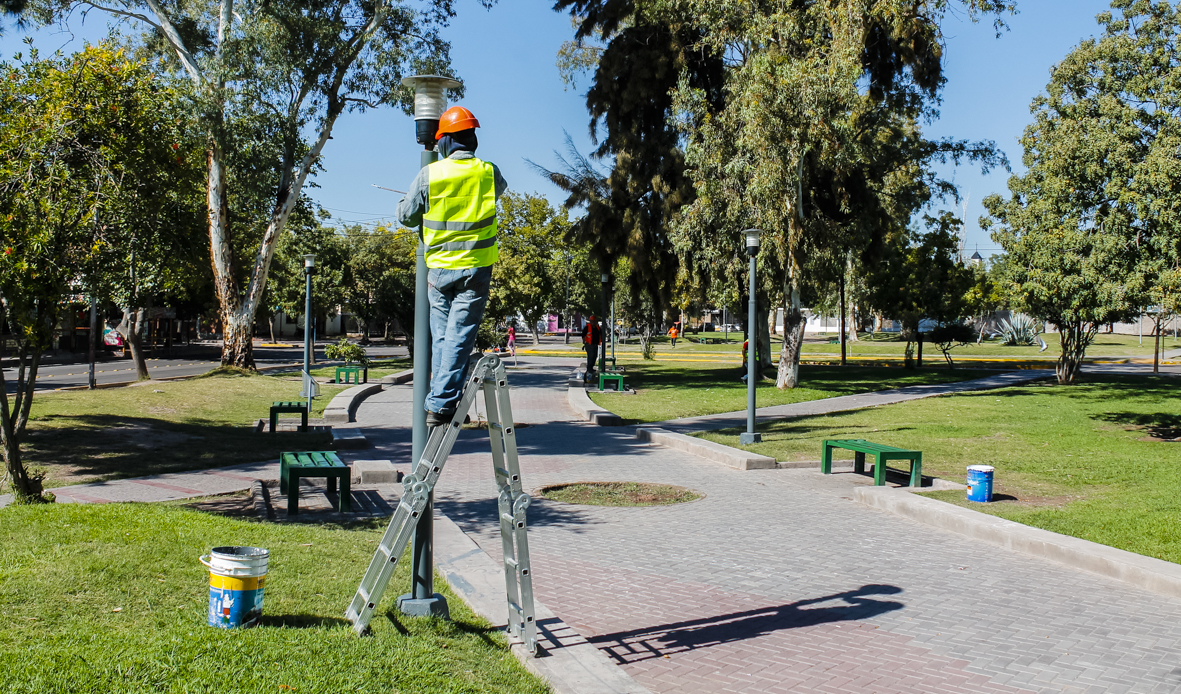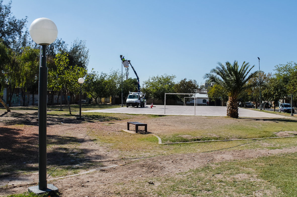 Son cerca de 70 locaciones entre plazas y espacios verdes en todo Guaymallén los que abarca esta primera etapa del Plan de Seguridad Eléctrica que la comuna lleva adelante desde principios de este año. En la plaza del barrio Covipa, en Las Cañas, está casi finalizada la optimización de todo el nuevo sistema; mientras que en el Parque Unimev, de Villa Nueva, el porcentaje de avance es de un 90%.