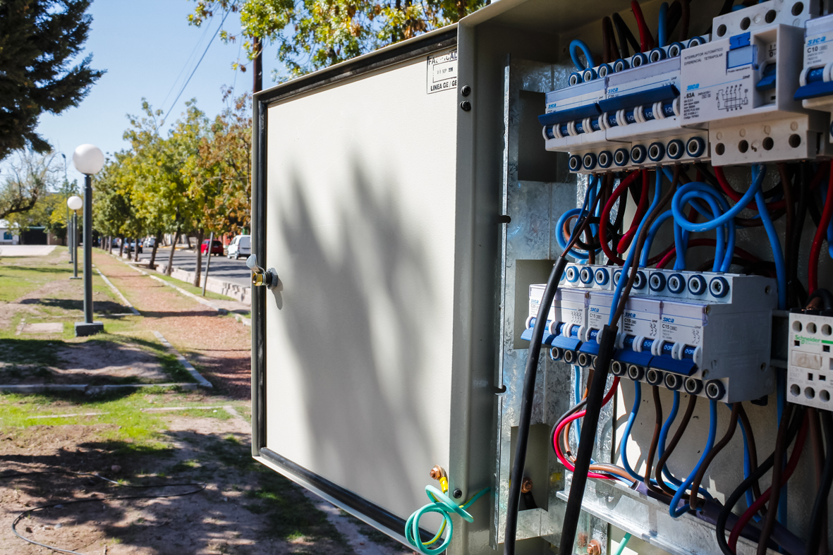 El Parque Unimev también muestra importantes avances en materia de seguridad eléctrica. Allí no fue necesario realizar el zanjeo y está concretada en un 85% la protección mecánica de columnas y farolas. Resta la puesta a tierra del tablero general y la conexión de las jabalinas y está previsto que la semana próxima estén finalizadas las obras.