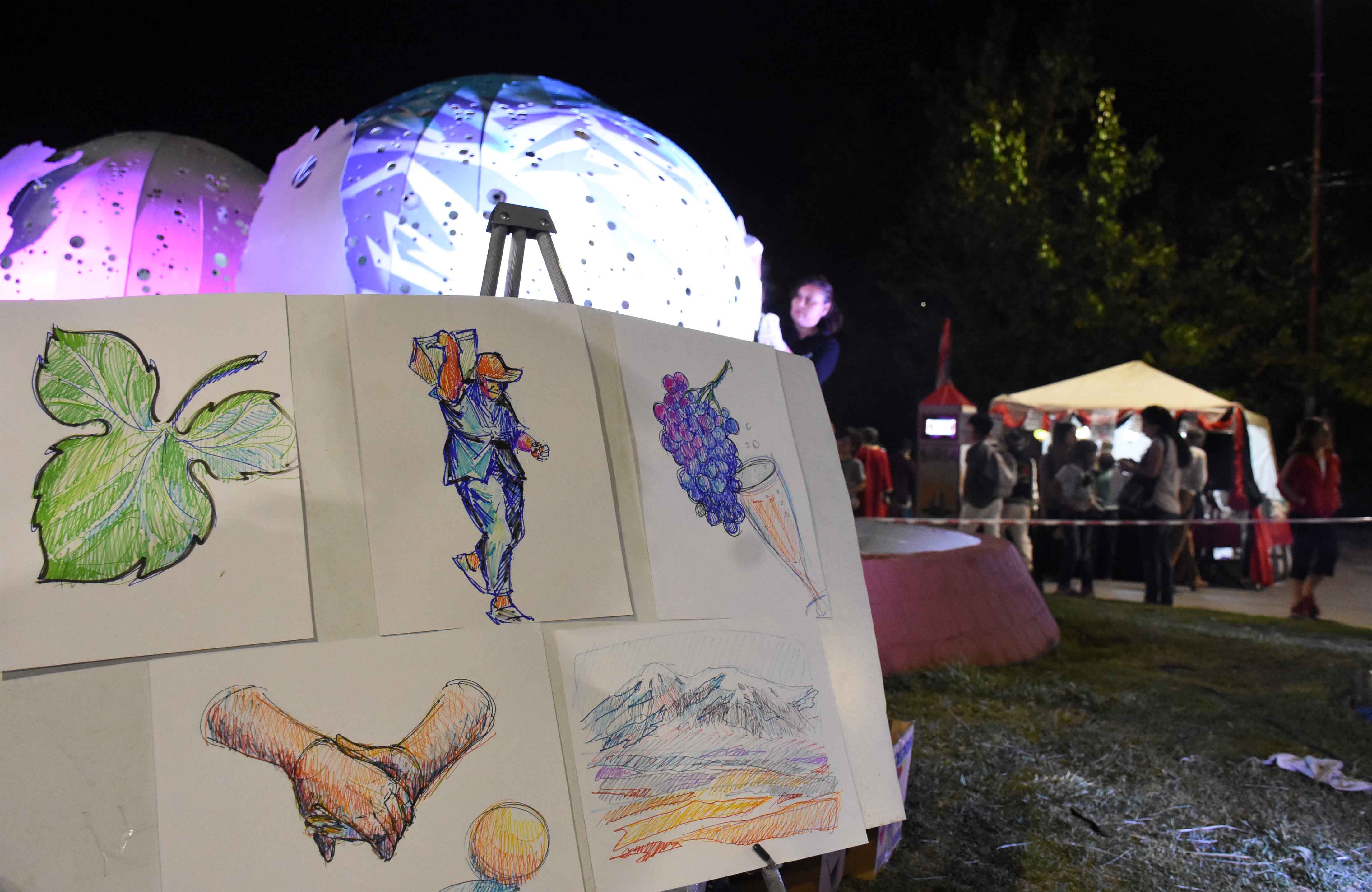 Durante las tres noches, los artistas Miguel Soria y Lorena Ordovini intervienen las tres esferas «Homenaje a las Colectividades del Mundo», con figuras de viñateros en Mendoza, paisajes de Argentina y figuras referidas a la integración y la diversidad en el mundo.
