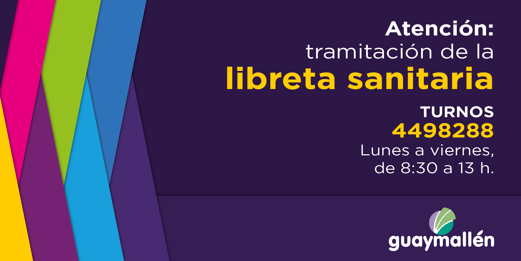 La comuna recuerda que está disponible el servicio de libreta sanitaria para aquellos contribuyentes que la necesiten de acuerdo a su rubro. Para ello, y sin excepción, deben pedir turno previamente al teléfono 4498288 (Dirección de Salud de Guaymallén), de lunes a viernes, de 8:30 a 13h. Vale recordar que esta es la única vía habilitada para solicitarlos. Durante la comunicación se les informará requisitos, documentación necesaria y el protocolo a seguir en cumplimiento con el distanciamiento social, preventivo y obligatorio vigente en la provincia. Luego, se enviará vía mail la fecha designada.