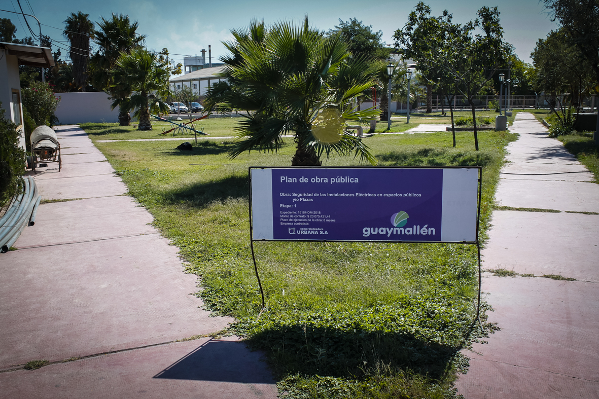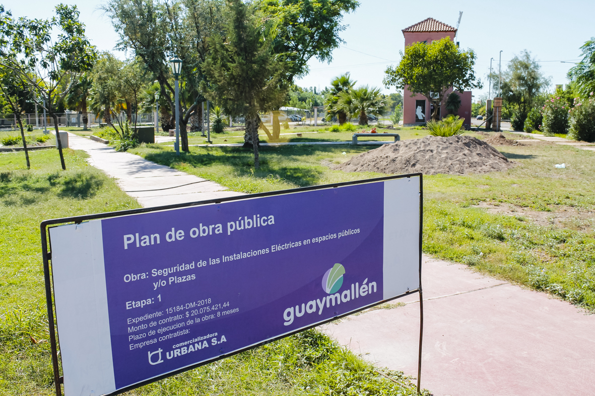 La Municipalidad de Guaymallén continúa ejecutando su Plan de Seguridad Eléctrica concentrado en plazas y espacios verdes de todo el departamento. Esta semana se trabaja en la plaza del barrio Solares del Trébol, en el distrito Rodeo de la Cruz, entre otros sitios. El objetivo de estas tareas es evitar que la desidia, la falta de mantenimiento, el abandono y el vandalismo deriven en accidentes. La iniciativa prevé que se intervengan cerca de 70 locaciones en total.