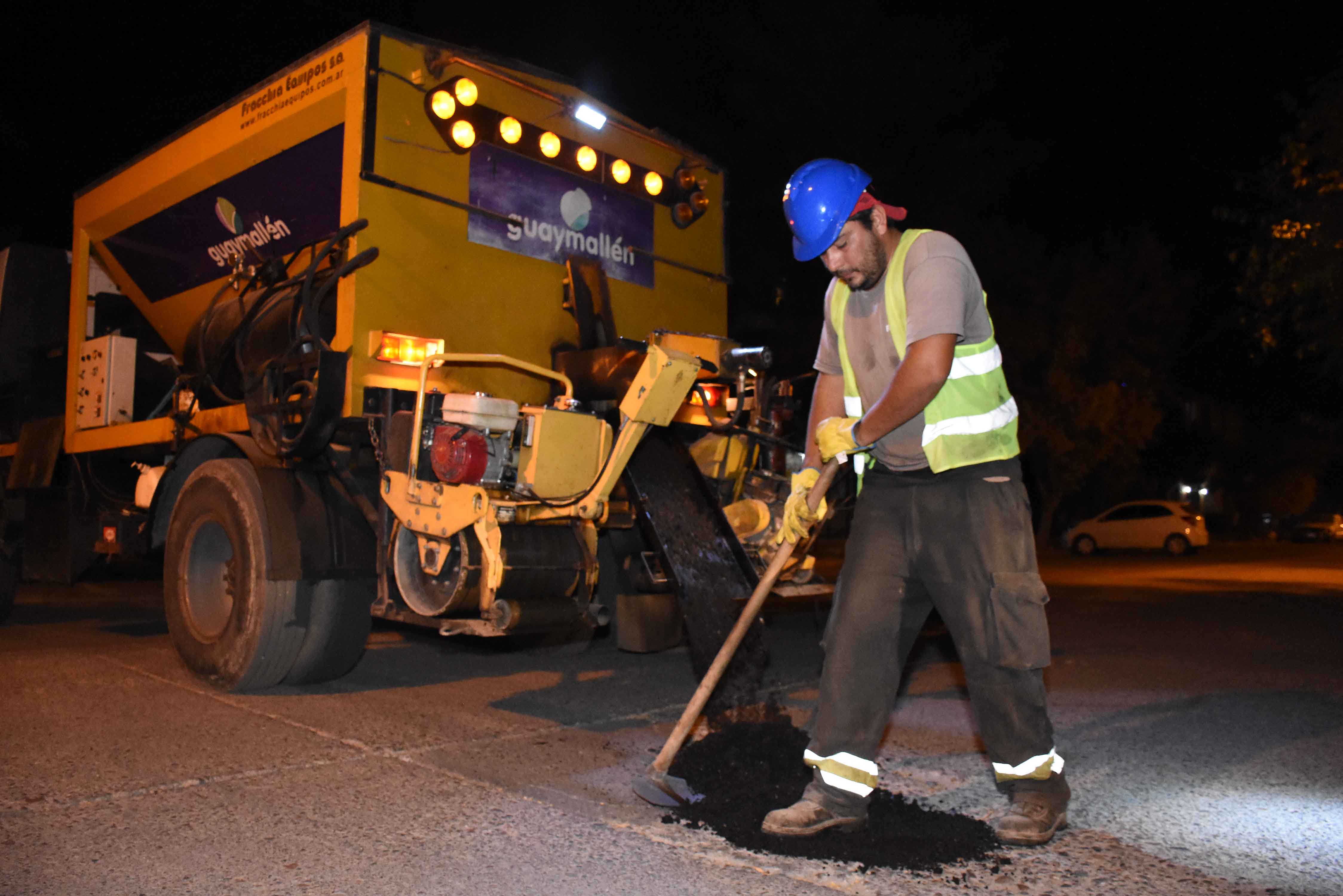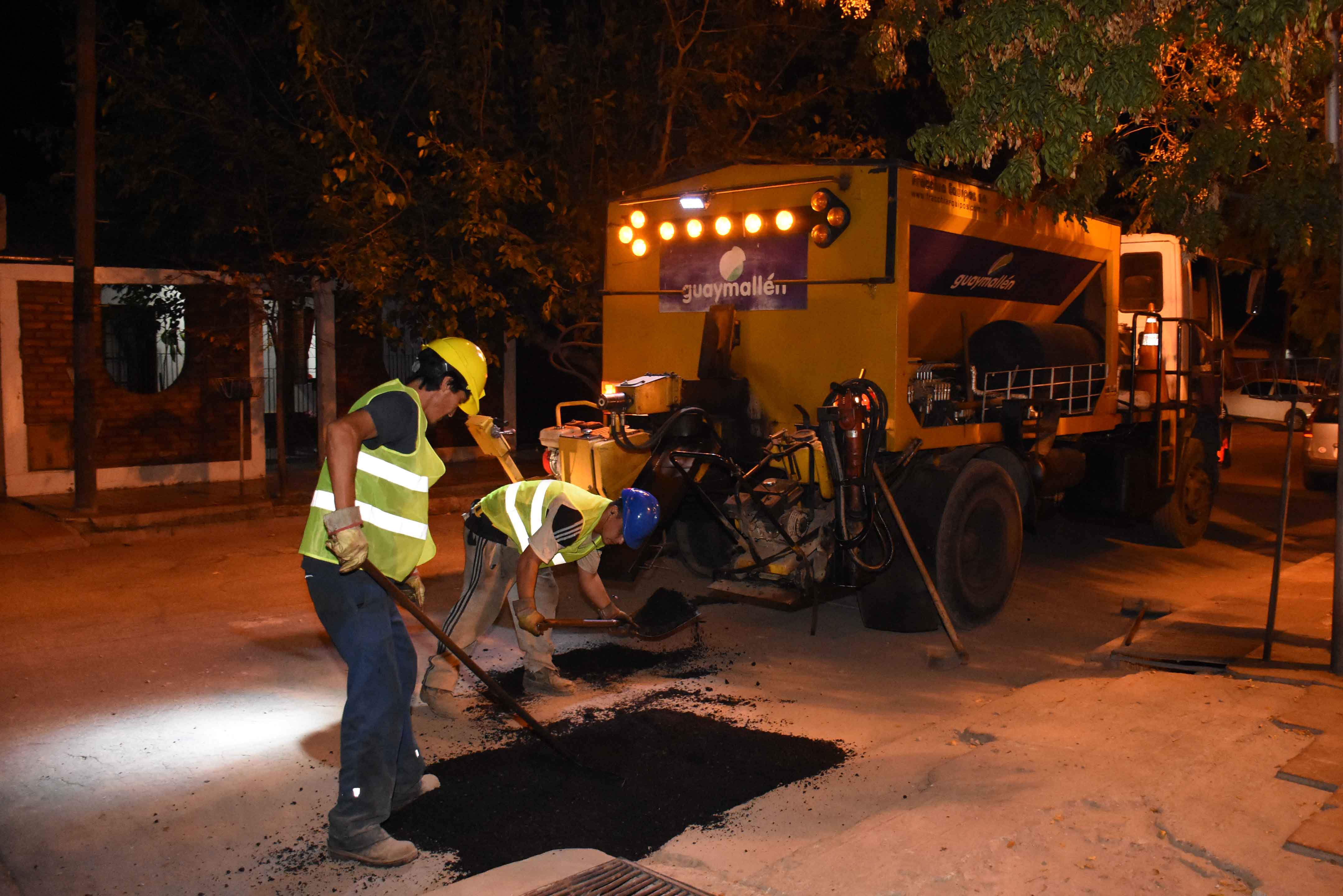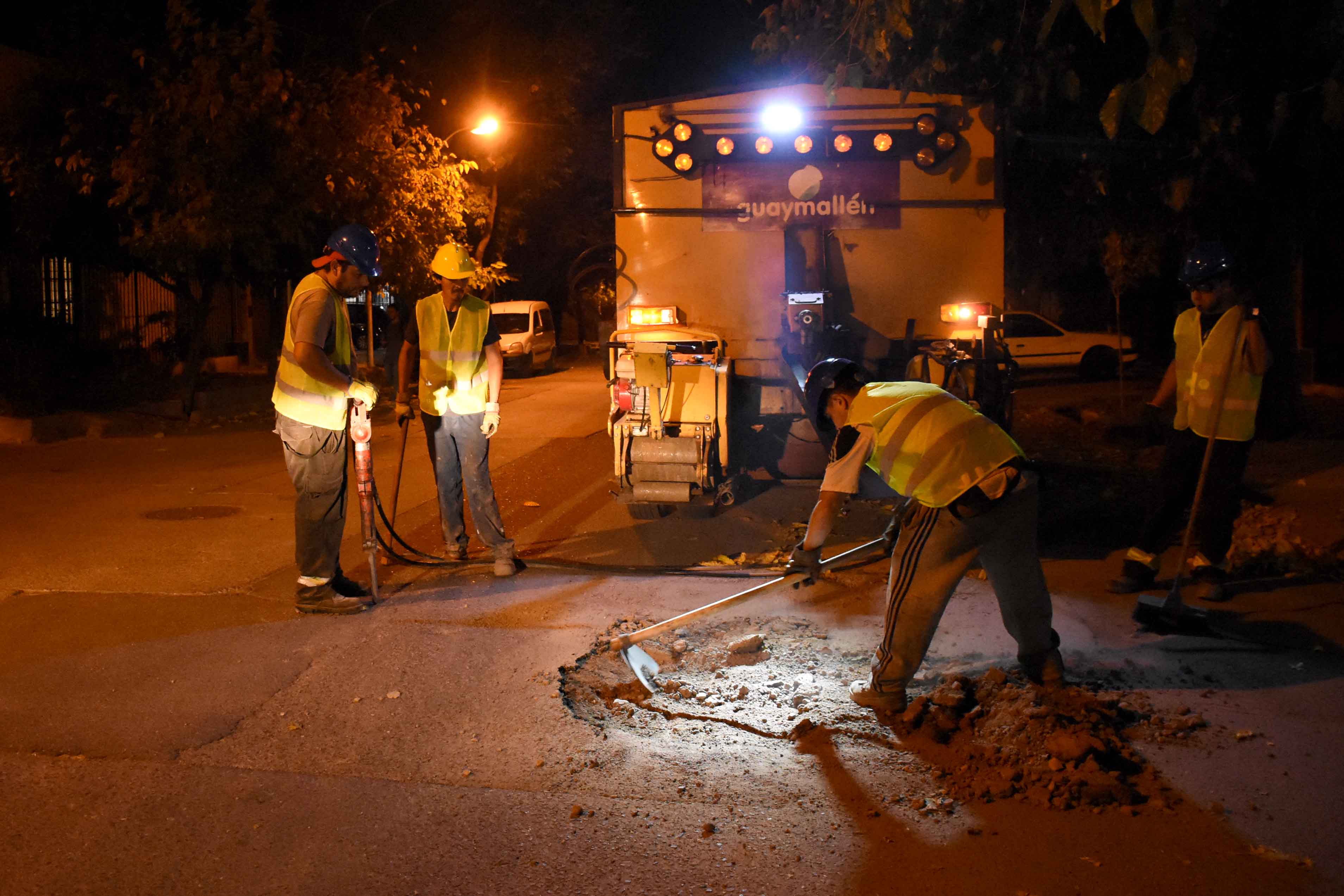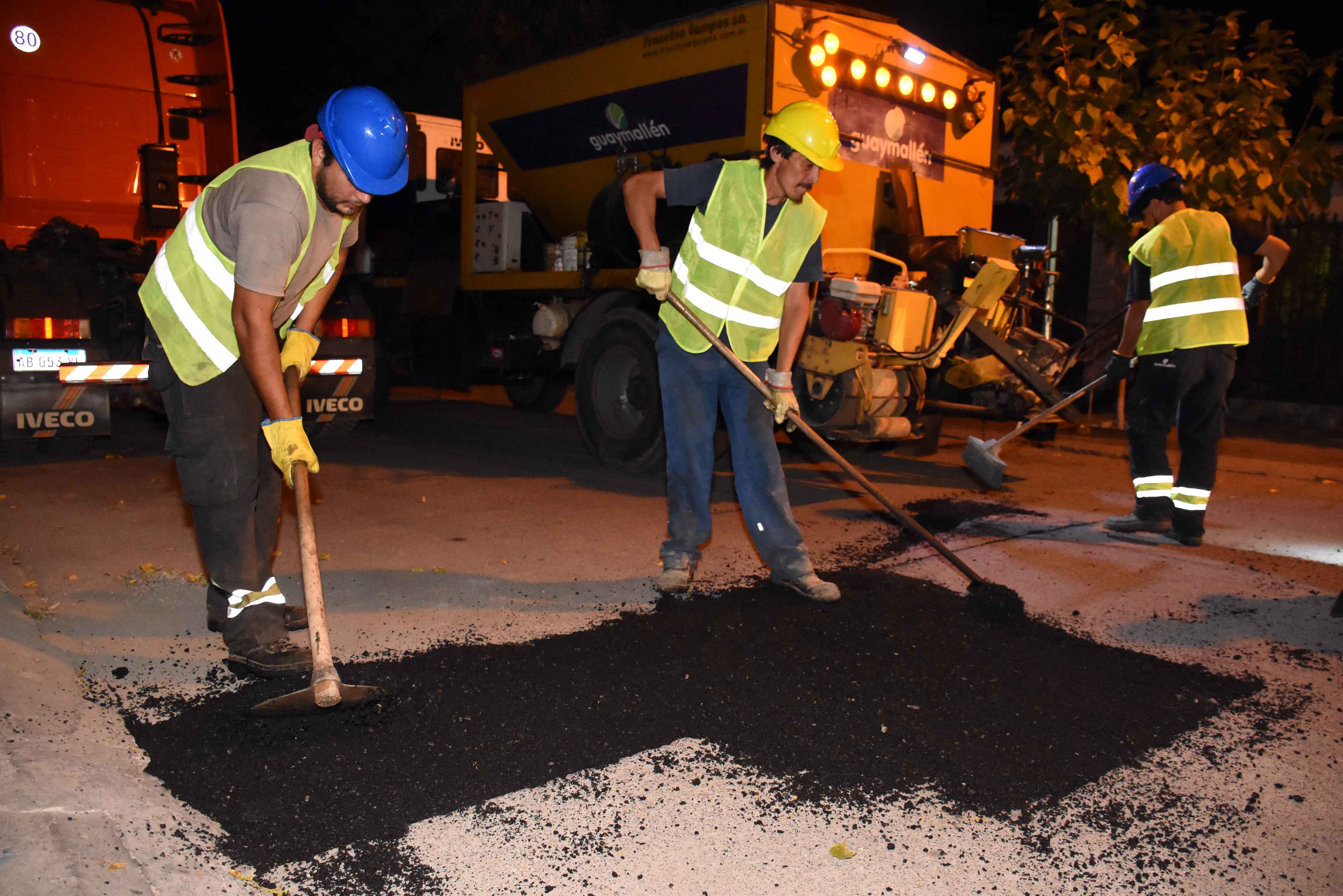 La Municipalidad de Guaymallén incorporó desde marzo una cuadrilla de bacheo que trabaja de noche. El objetivo es brindar una mejor respuesta a la demanda de los vecinos que se comunican a través del call center, para realizar una mayor cobertura de los reclamos. La cuadrilla nocturna se suma a las dos que trabajan durante el día. El trabajo de mantenimiento de las calles acompaña al Plan de Recuperación Vial que la comuna implementa sin pausa y por etapas desde 2016.