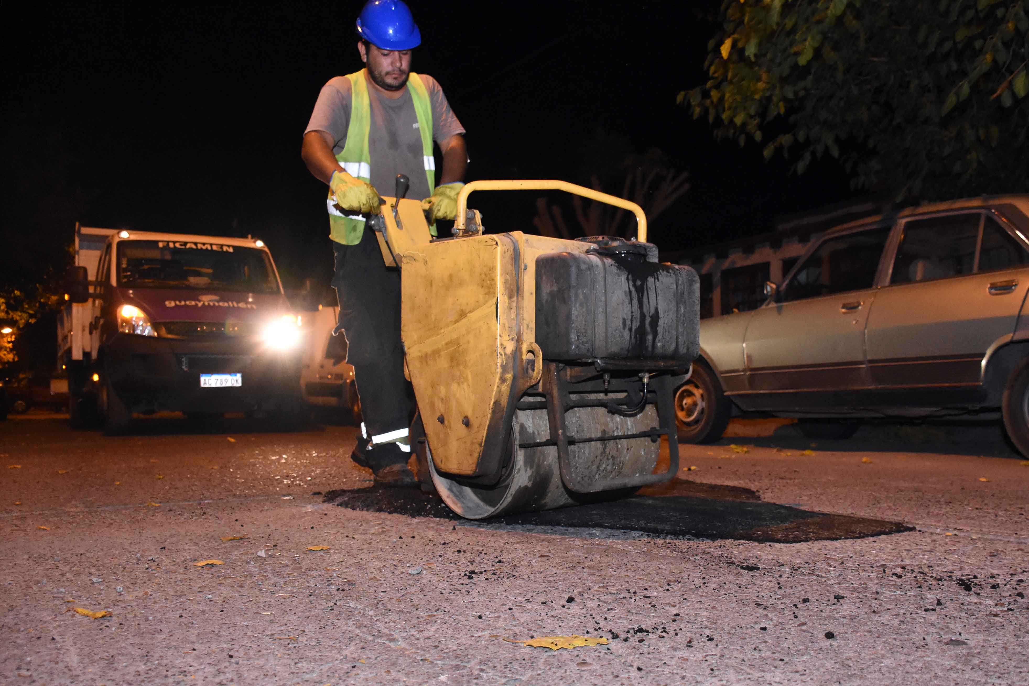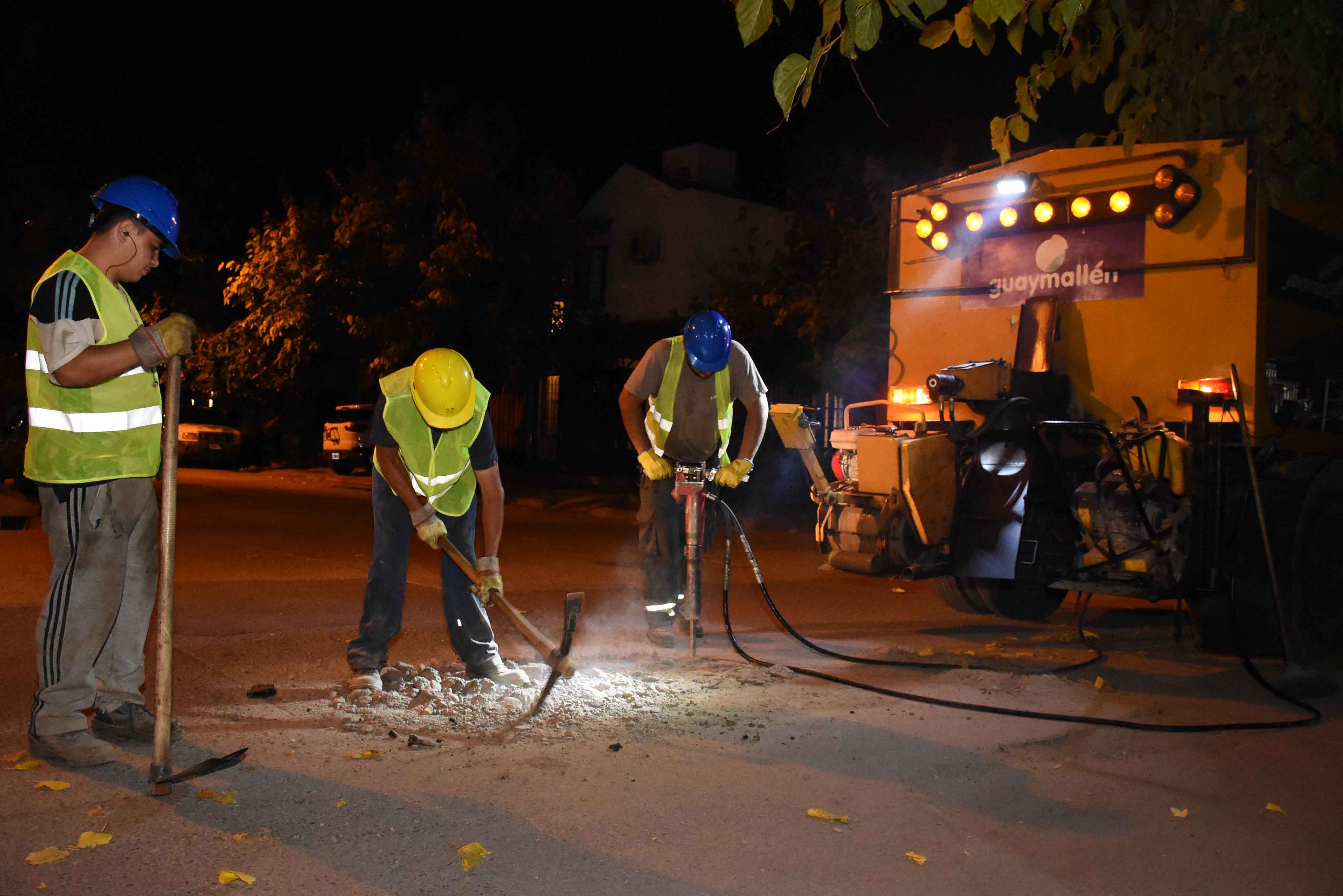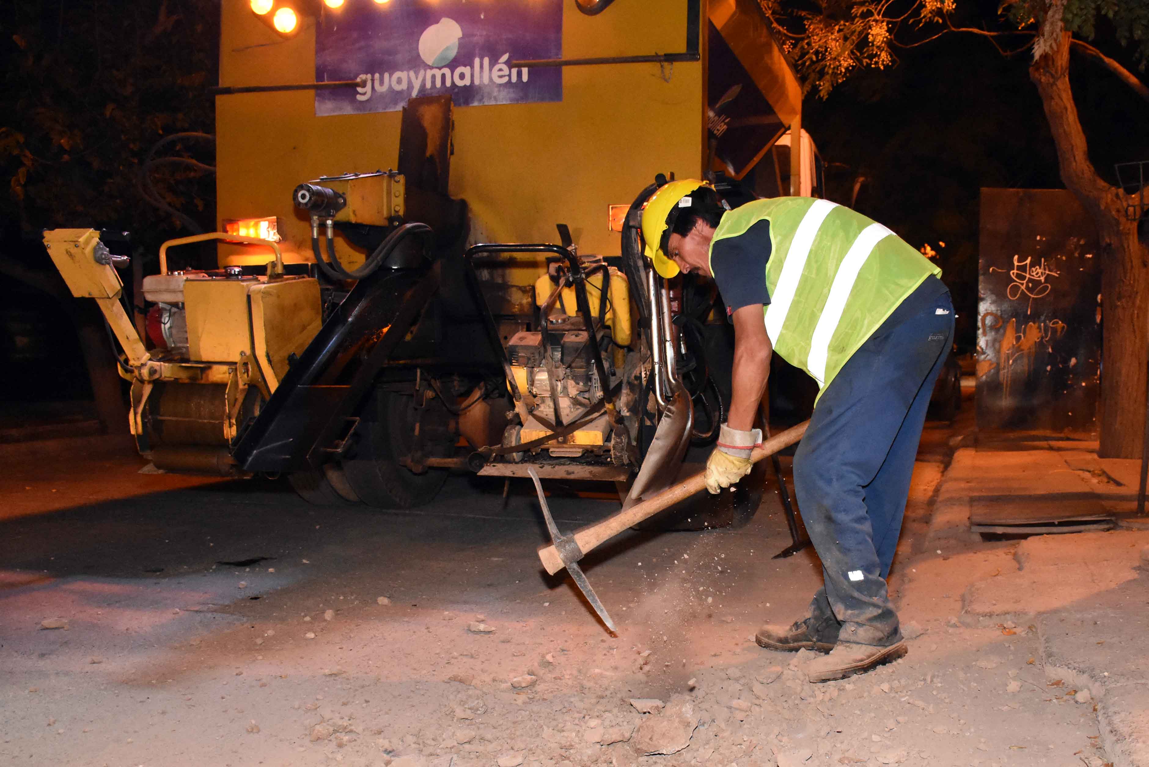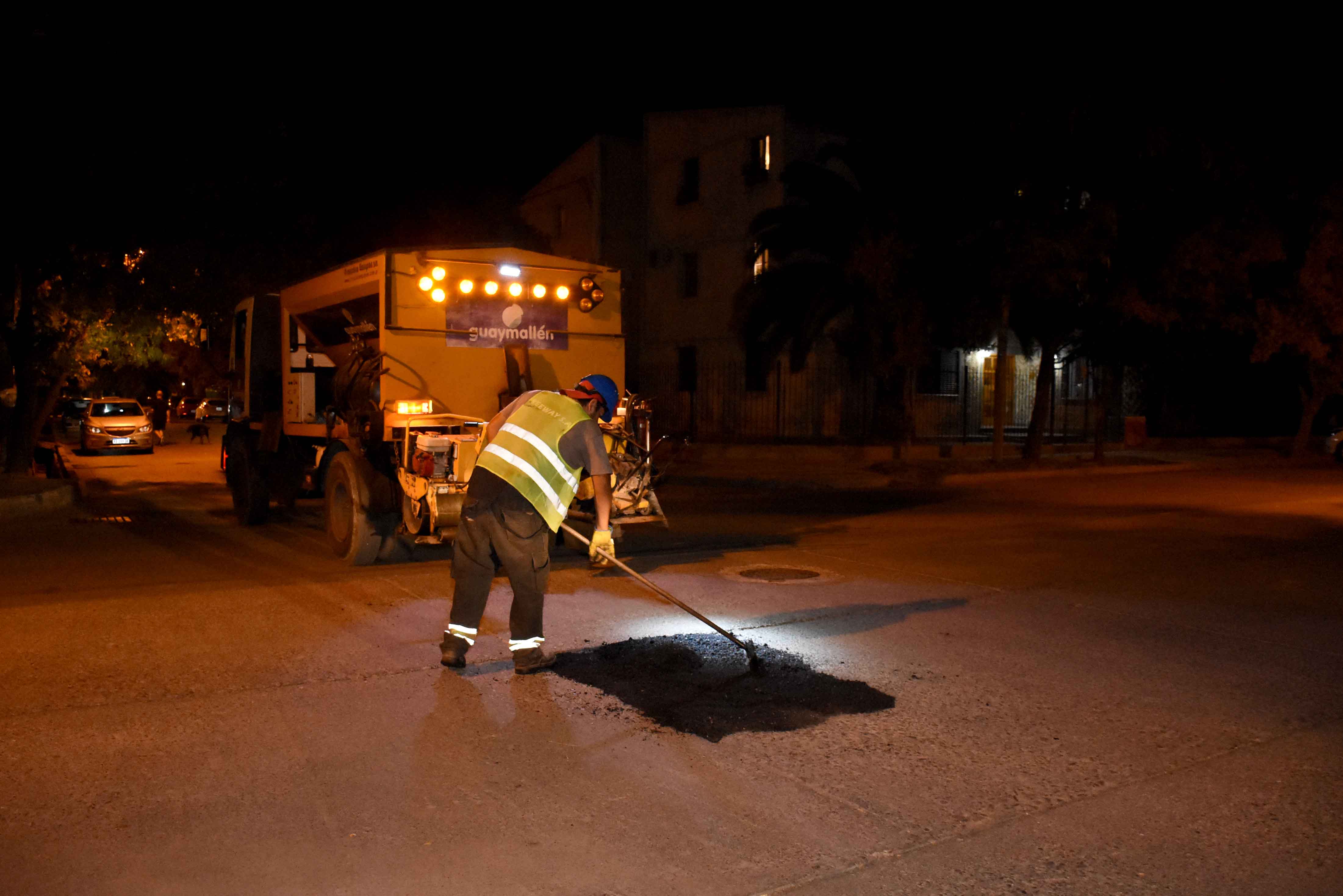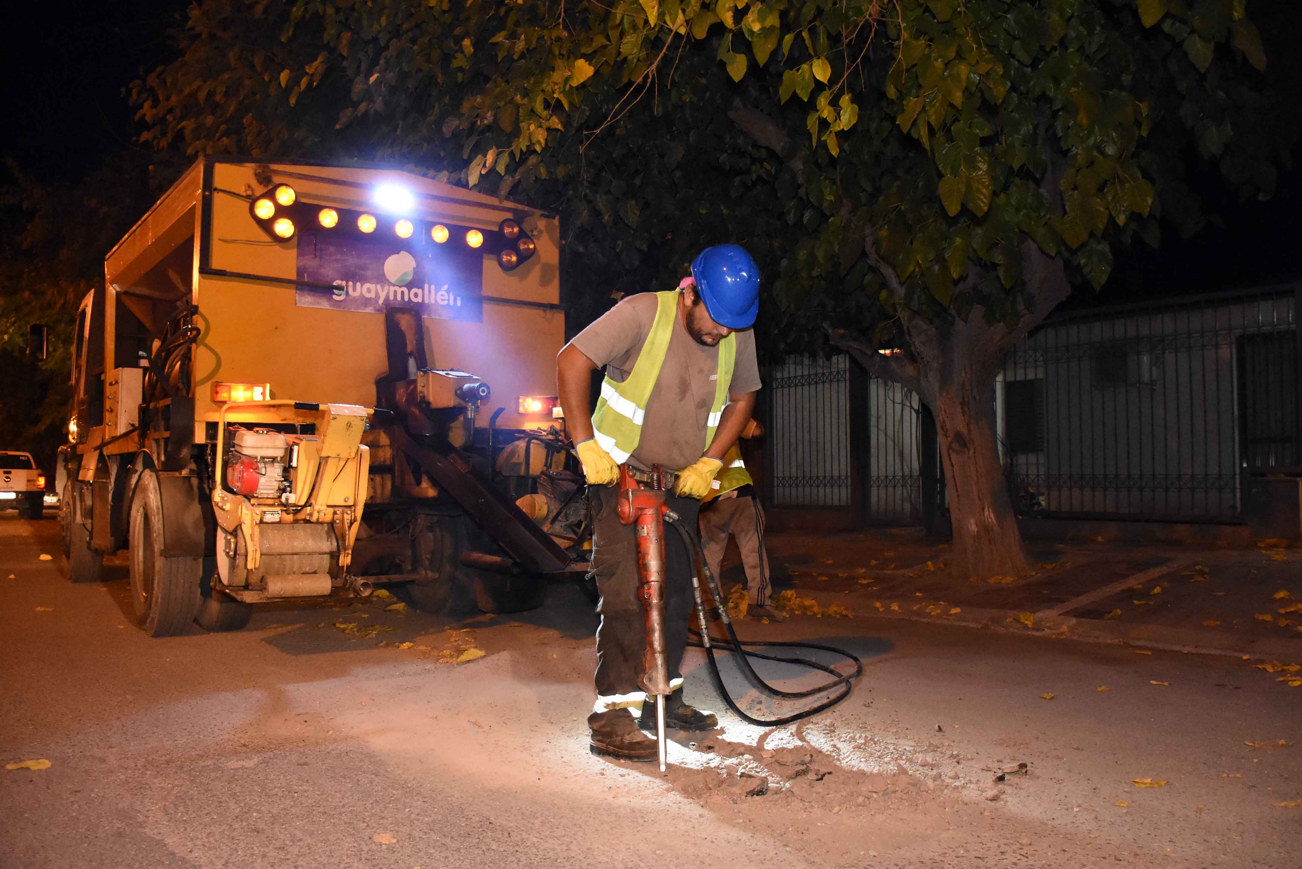 La Municipalidad de Guaymallén incorporó desde marzo una cuadrilla de bacheo que trabaja de noche. El objetivo es brindar una mejor respuesta a la demanda de los vecinos que se comunican a través del call center, para realizar una mayor cobertura de los reclamos. La cuadrilla nocturna se suma a las dos que trabajan durante el día. El trabajo de mantenimiento de las calles acompaña al Plan de Recuperación Vial que la comuna implementa sin pausa y por etapas desde 2016.