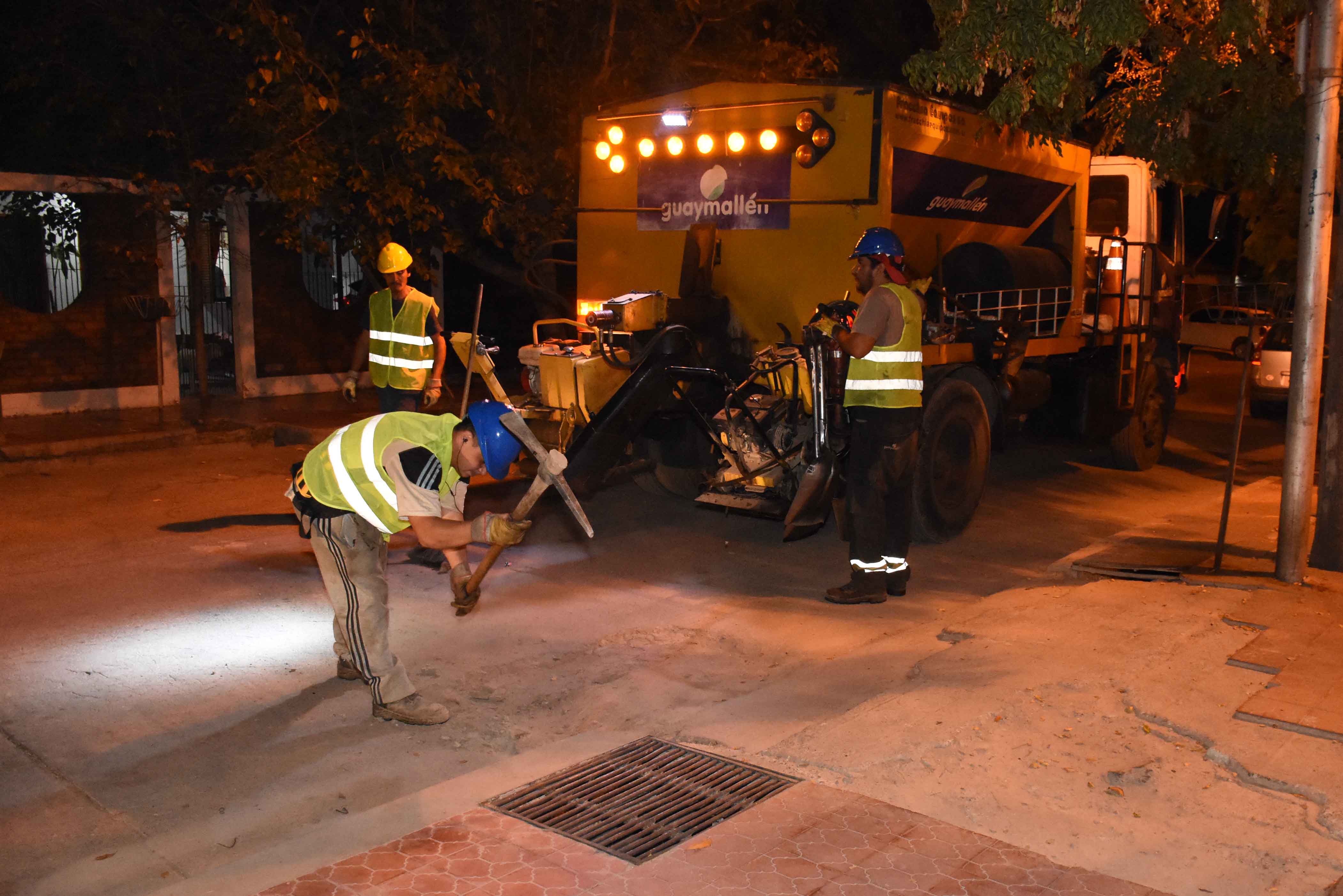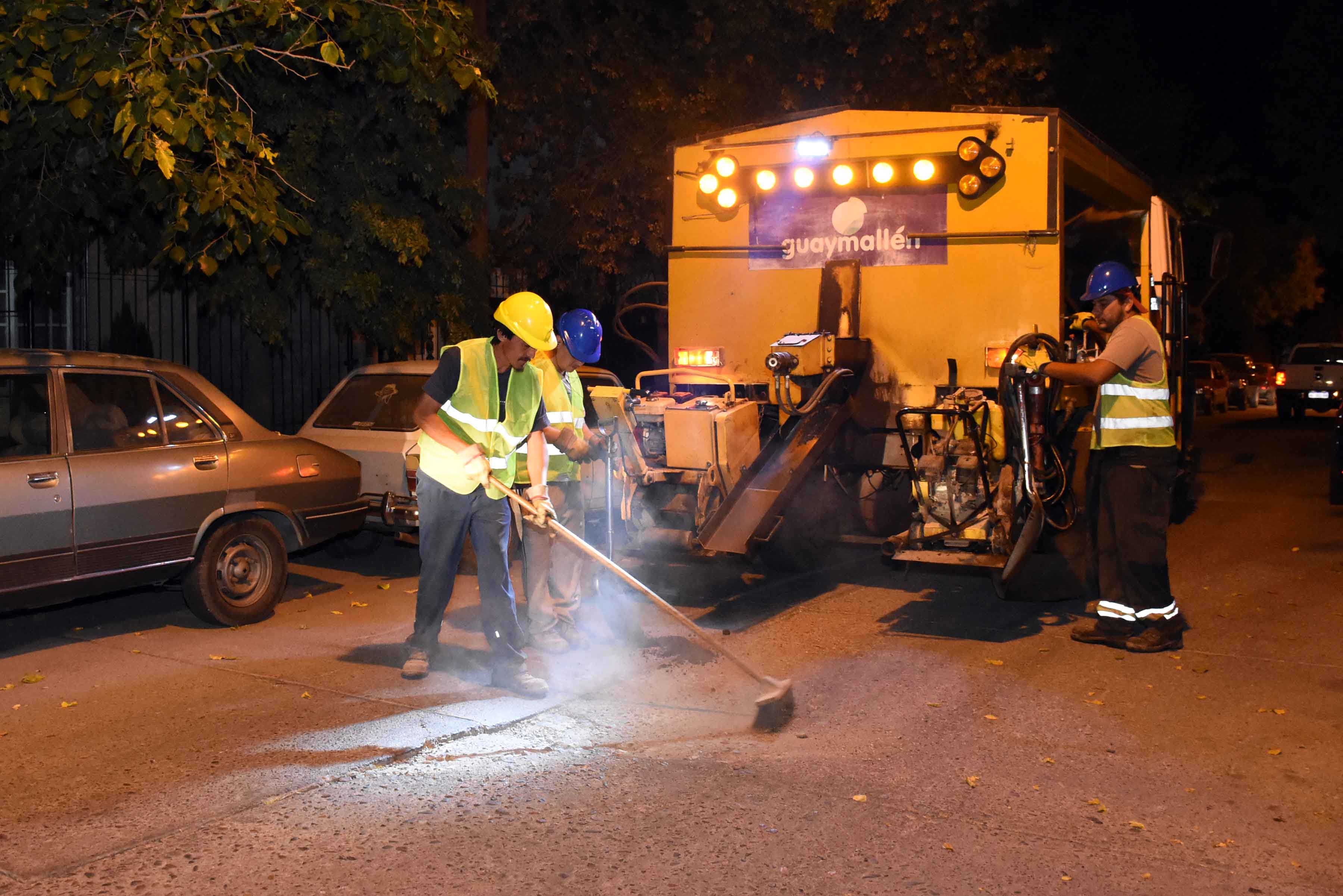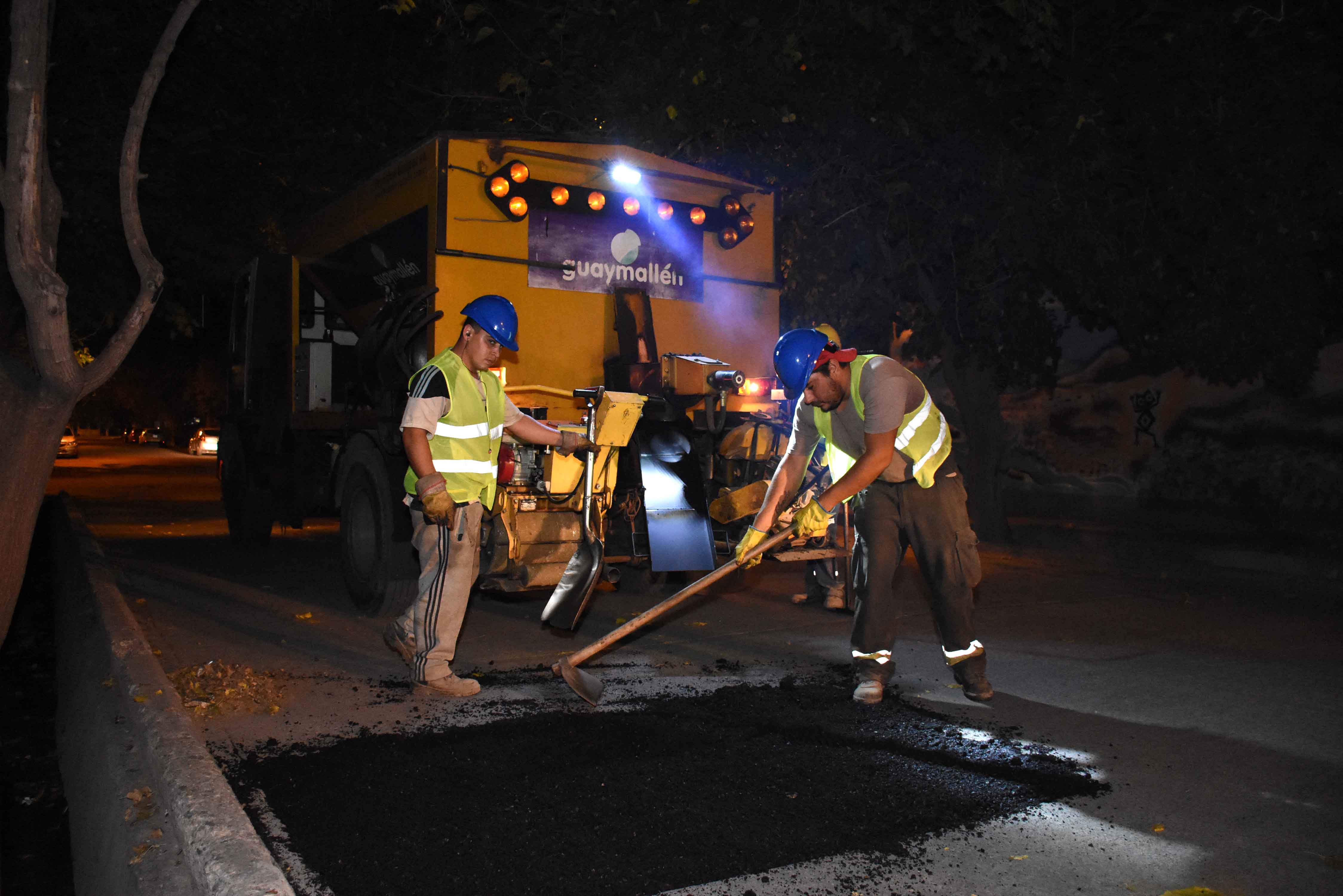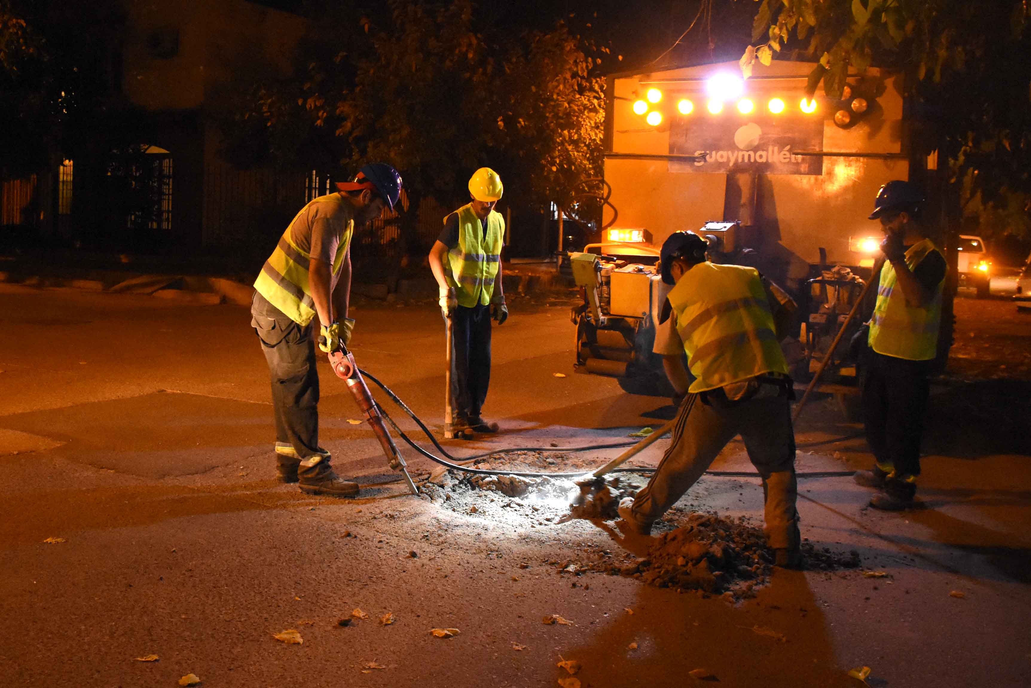 La Municipalidad de Guaymallén incorporó desde marzo una cuadrilla de bacheo que trabaja de noche. El objetivo es brindar una mejor respuesta a la demanda de los vecinos que se comunican a través del call center, para realizar una mayor cobertura de los reclamos. La cuadrilla nocturna se suma a las dos que trabajan durante el día. El trabajo de mantenimiento de las calles acompaña al Plan de Recuperación Vial que la comuna implementa sin pausa y por etapas desde 2016.