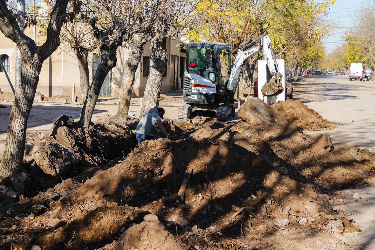 Estos trabajos, enmarcados en el plan de Drenajes Urbanos II de la Municipalidad de Guaymallén, se concretan a la par en las calles López de Gomara, Belgrano, La Pampa, Gutemberg y Araujo.
