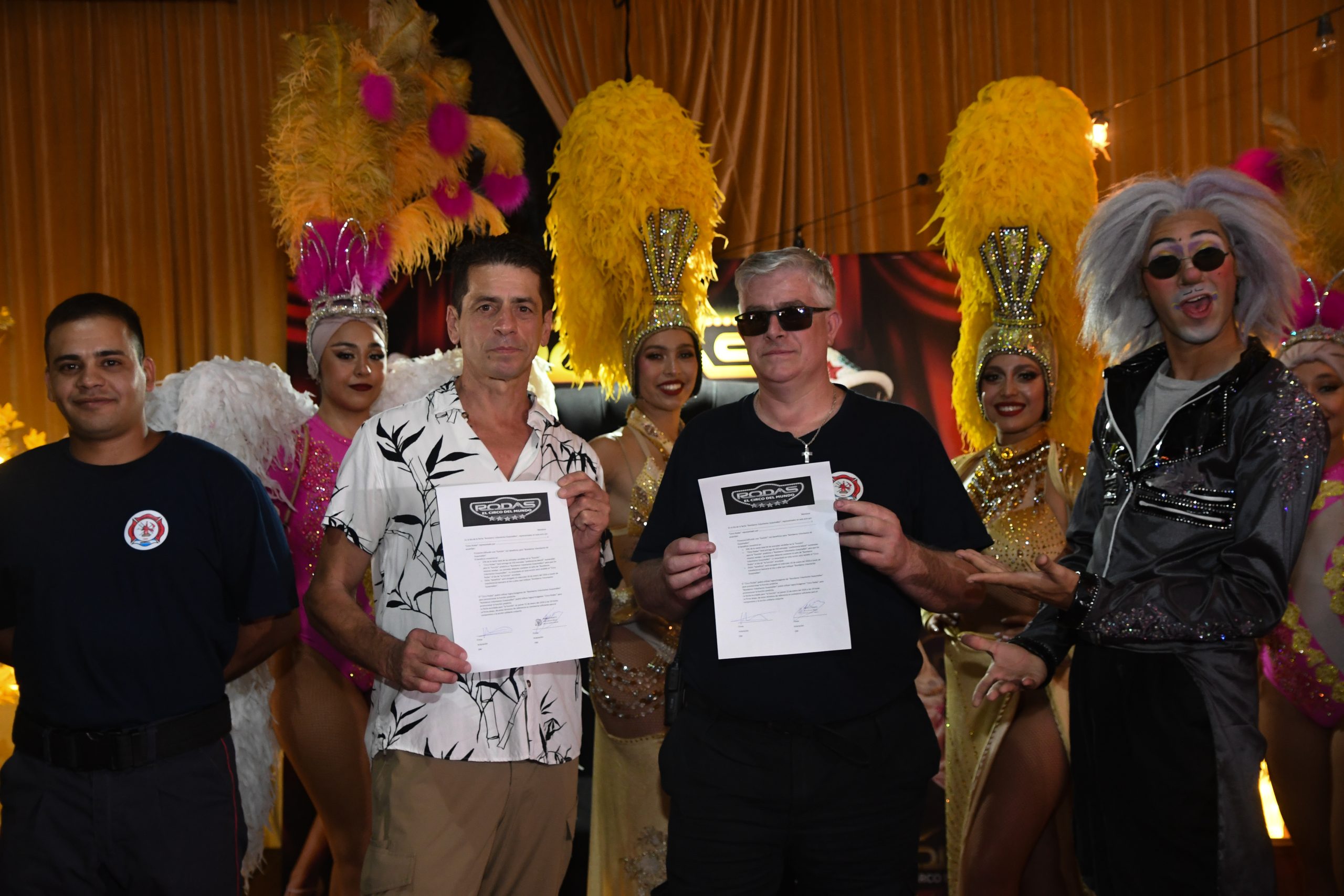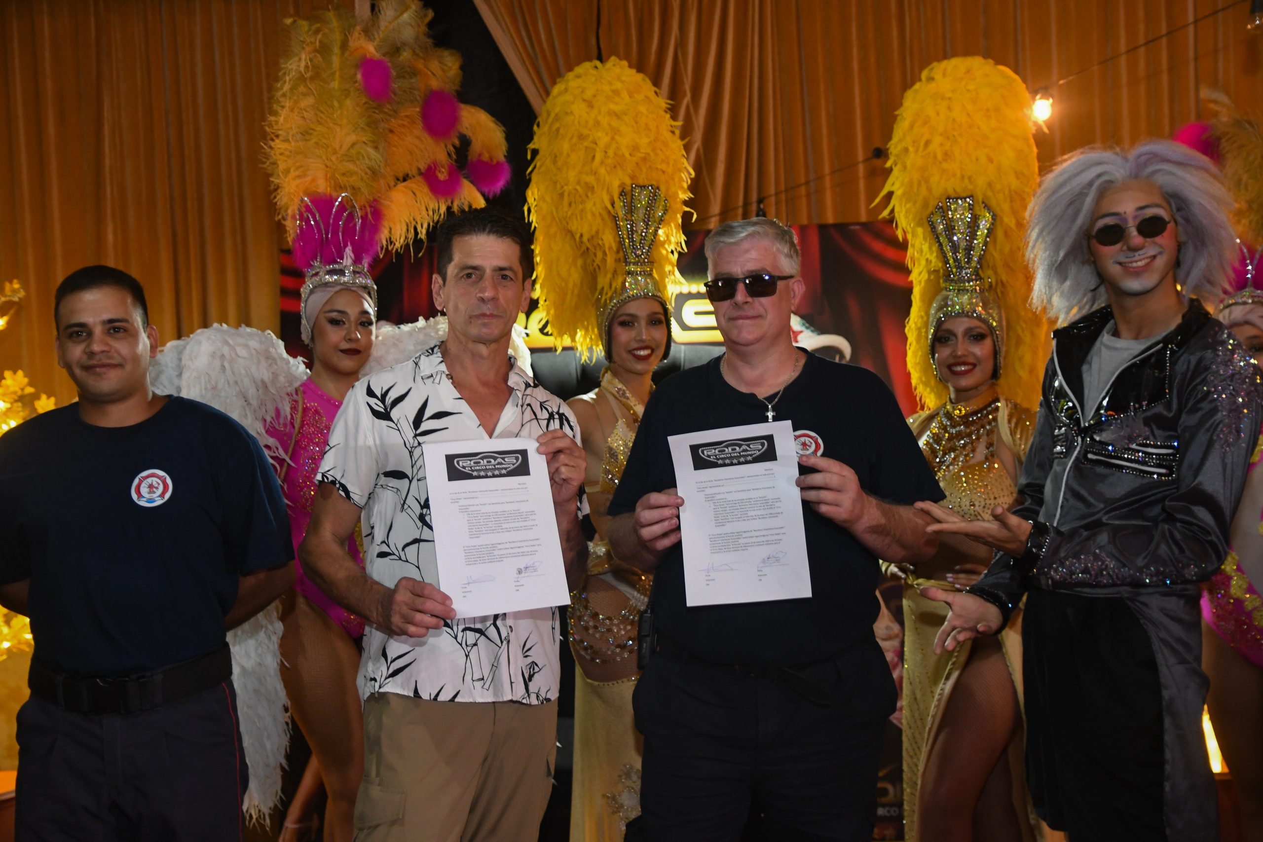 El acuerdo fue firmado en el día de la fecha entre Arturo Belzagui, en representación del Circo Rodas, ubicado en Lamadid y Acceso Sur, Guaymallén, y Franco Privato, representante de los Bomberos Voluntarios de Guaymallén.
