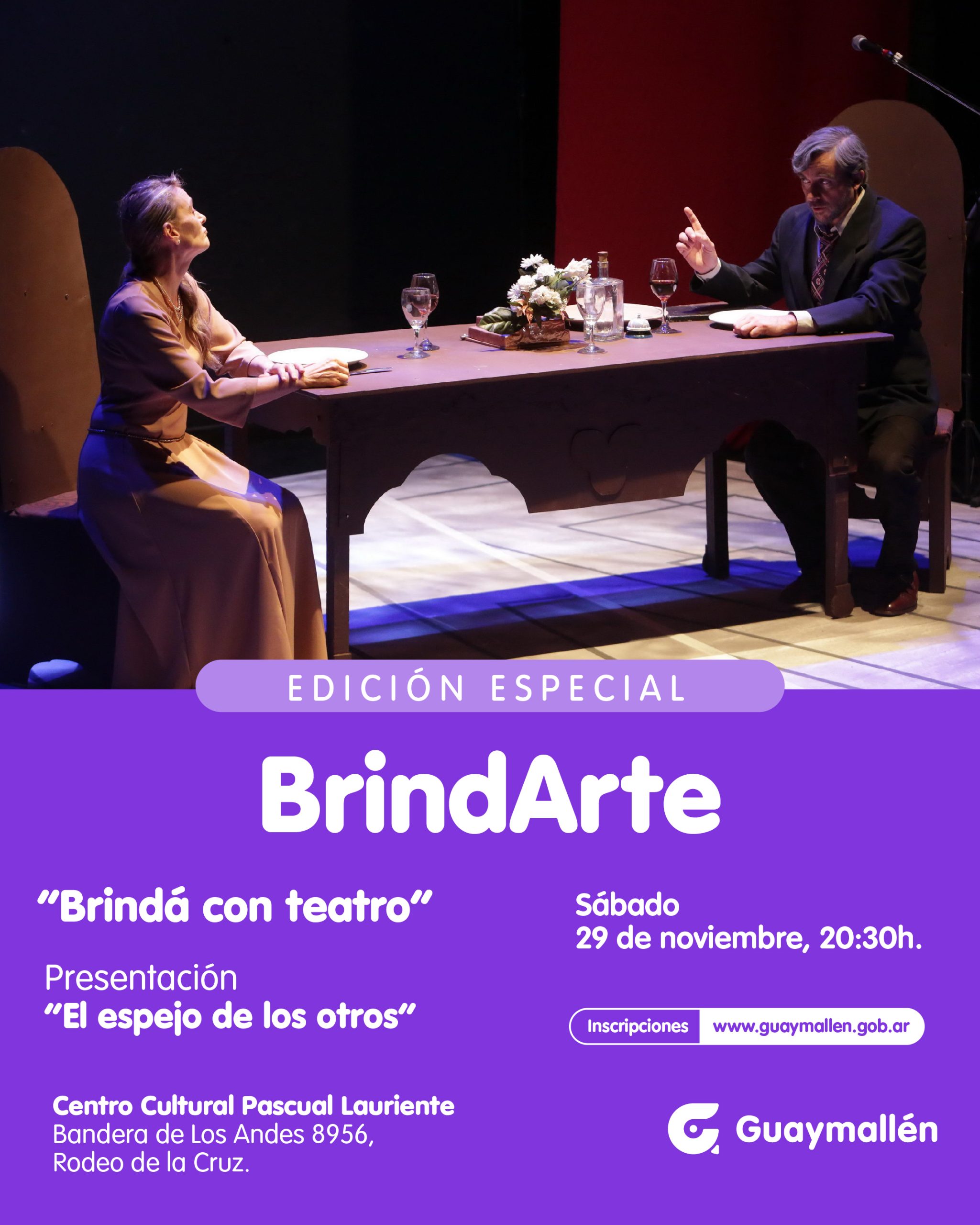 La Municipalidad de Guaymallén invita a disfrutar de una nueva edición de BrindArte, el ciclo que celebra el encuentro entre el arte y el vino. En esta oportunidad, el programa presenta la propuesta “Brindá con Teatro”, donde se combinará una experiencia escénica con una degustación de vinos locales.