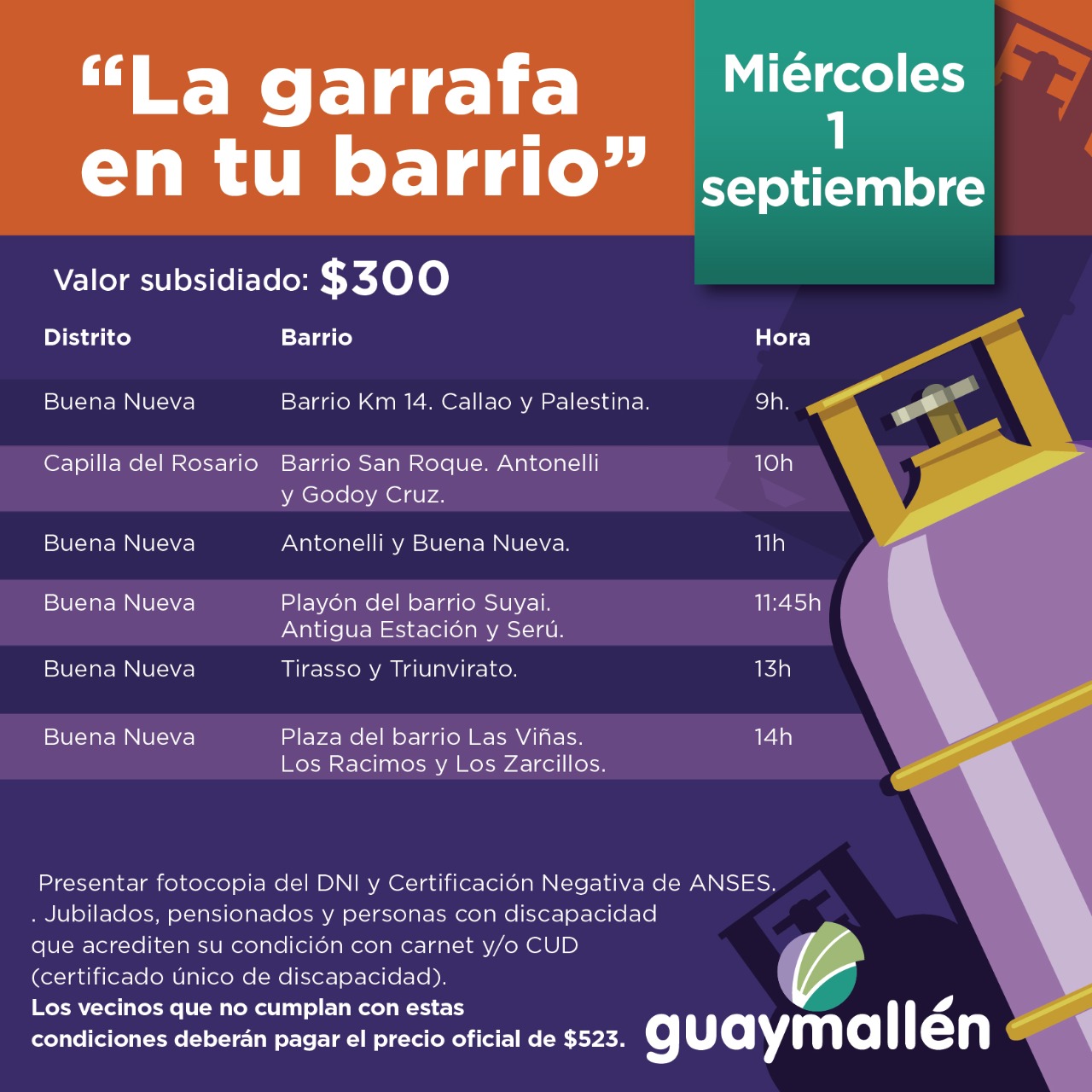 La próxima semana, las familias podrán adquirir hasta dos garrafas de 10kg a $300, a partir de un subsidio municipal. Para tener acceso a este beneficio, deberán presentar fotocopia del DNI y Certificación Negativa de ANSES. La propuesta se amplía a jubilados, pensionados y personas con discapacidad que acrediten su condición con carnet y/o CUD (certificado único de discapacidad).