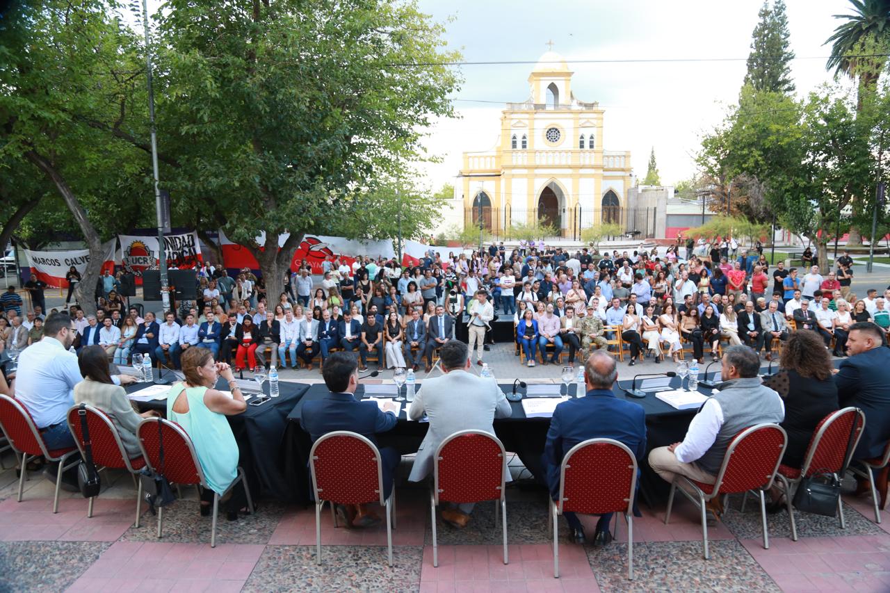 Ya sobre el tramo final del discurso, Calvente rescató las obras que se hicieron y las que se vienen y que dejarán huella en la fisonomía del departamento. Una de ellas es el futuro Parque Solar Municipal de Guaymallén, el parque solar de generación distribuida más grande de la Argentina. Este proyecto, que ya se encuentra próximo a finalizar el proceso de licitación, el cual estamos llevando adelante junto a EMESA, permitirá cubrir el 100% del consumo eléctrico de los servicios municipales, incluido el alumbrado público, lo que generará un ahorro económico muy significativo para las finanzas del municipio y, al mismo tiempo, reducirá de manera concreta nuestra huella de carbono”.