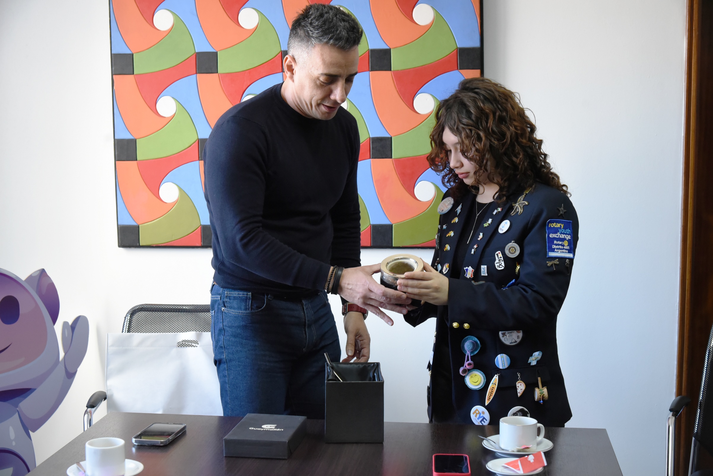 En el encuentro, Calvente y las autoridades rotarias charlaron sobre acciones conjuntas para potenciar los intercambios de estudiantes jóvenes que cursen estudios en escuelas del departamento y que los chicos «lleven a Guaymallén» a los destinos que les toquen en suerte.