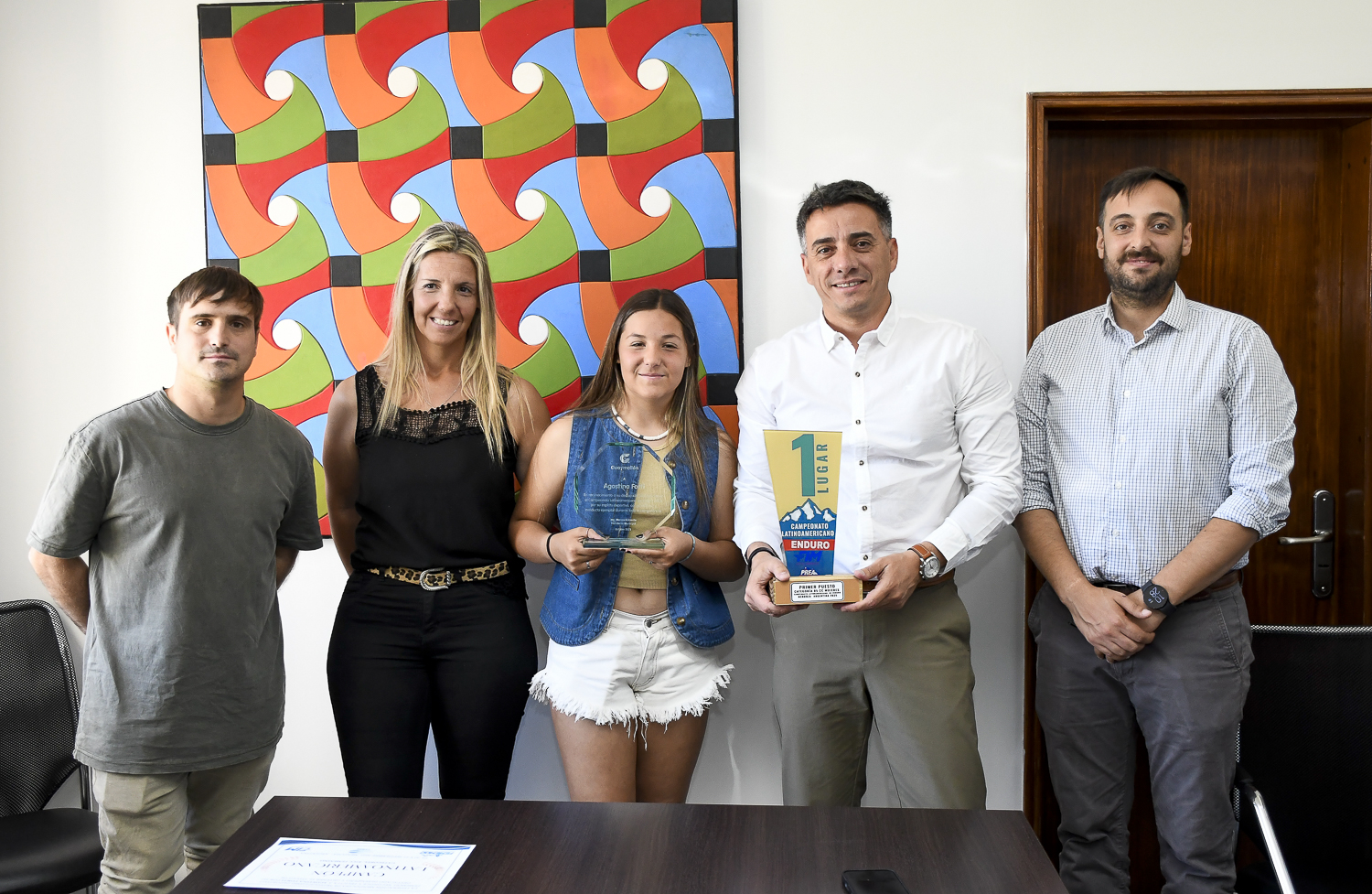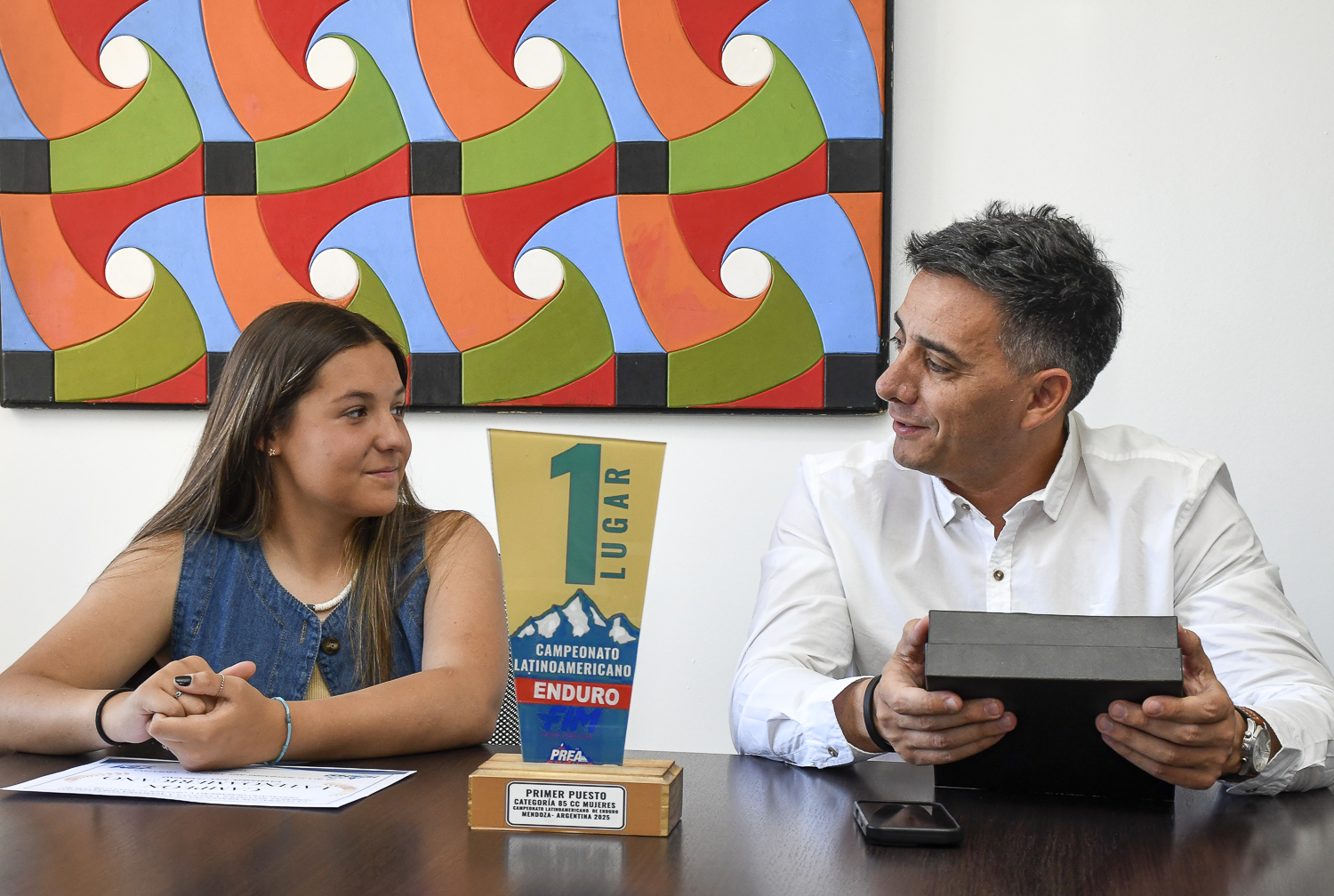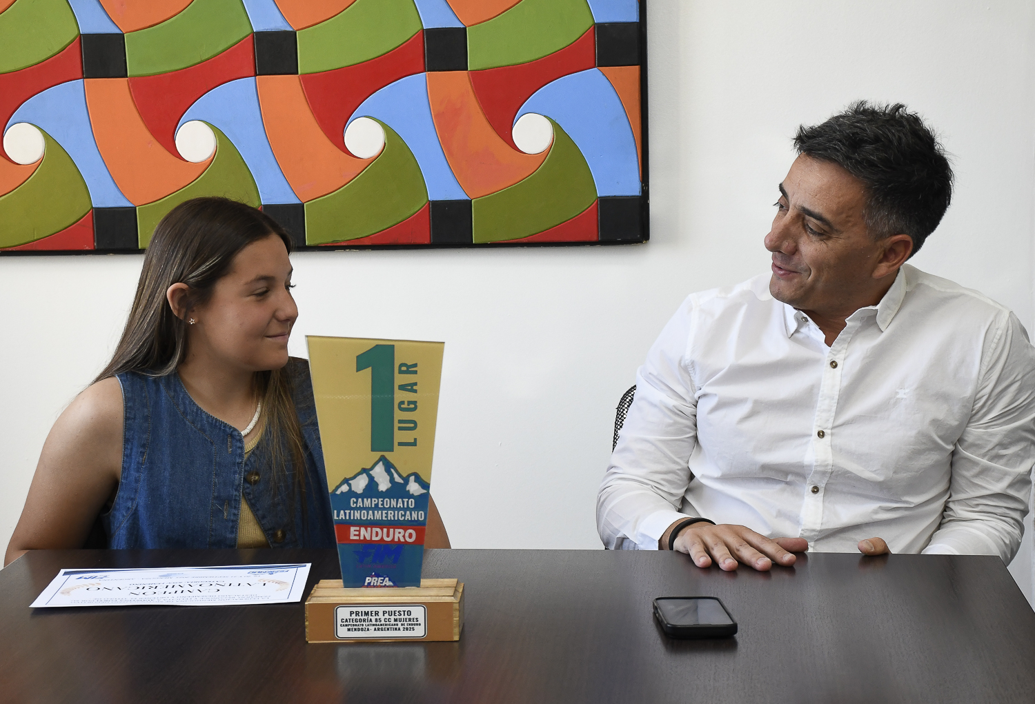 El intendente de Guaymallén, Marcos Calvente, recibió a Agostina Forti, la joven guaymallina de tan solo 13 años que se consagró campeona latinoamericana de Enduro en la categoría 85cc Mujeres, durante la competencia realizada recientemente en Mendoza.