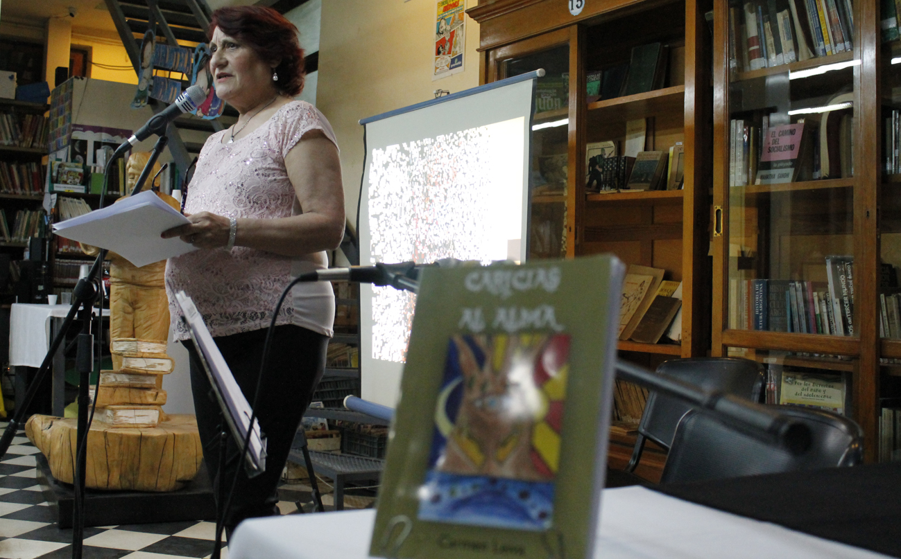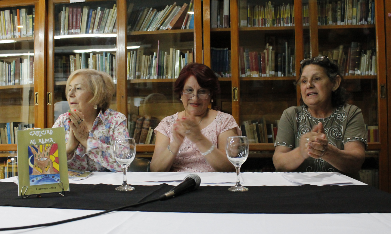 El pasado jueves, rodeada de amigos y artistas invitados, la escritora Carmen Leiva presentó su libro “Caricias del alma”, en la biblioteca municipal Almafuerte.