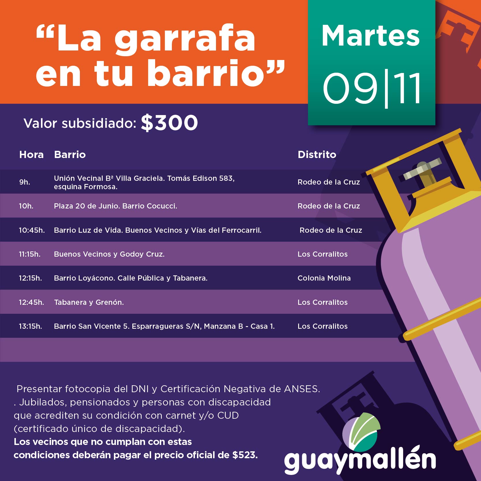 Circuito semanal de «La garrafa en tu barrio» en Guaymallén