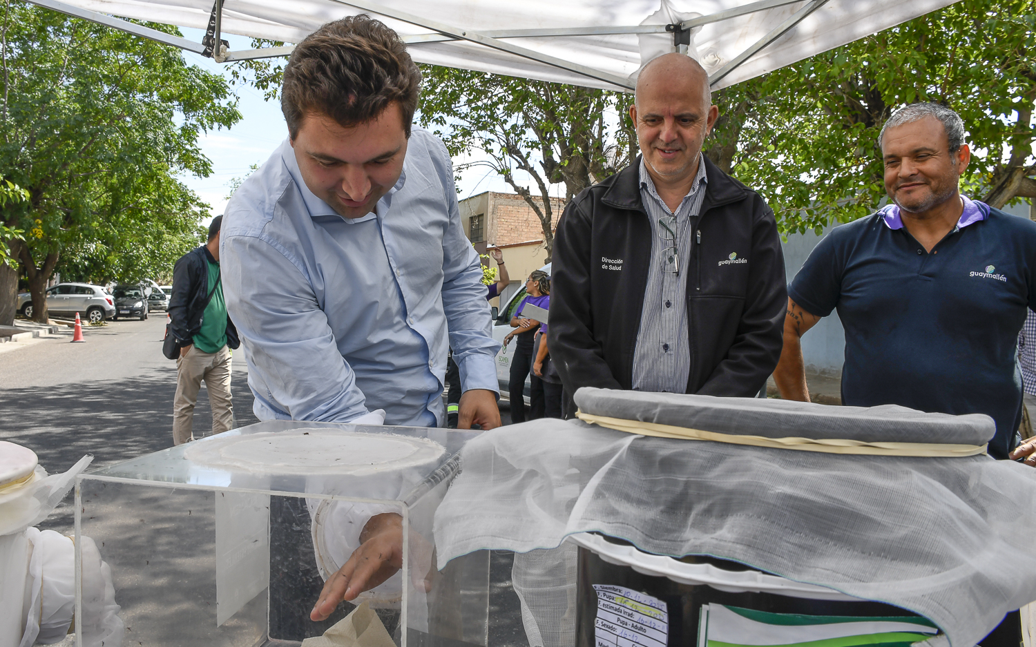 Encabezaron la liberación de mosquitos la coordinadora del Iscamen Mónica López, el secretario de Gobierno de la Municipalidad de Guaymallén Ignacio Conte, y el subdirector de Salud de la comuna Marcelo Castillo.