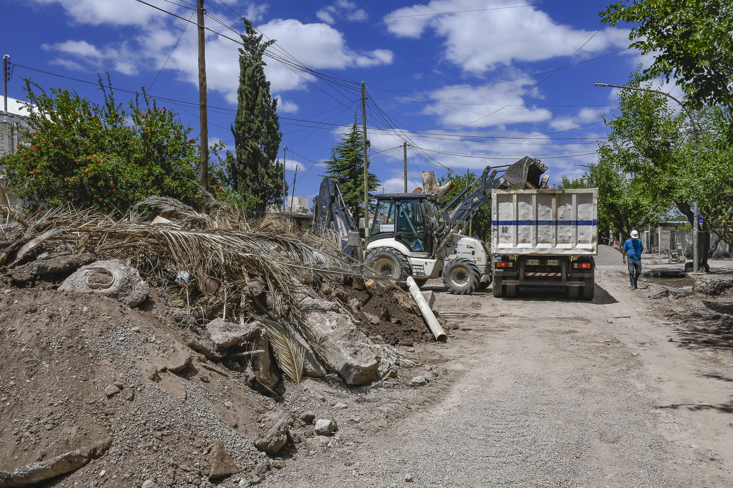 Esta demolición y excavación será aprovechada para renovar instalaciones de agua potable y cloaca, reemplazando cañerías e incorporando nuevas conexiones domiciliarias.