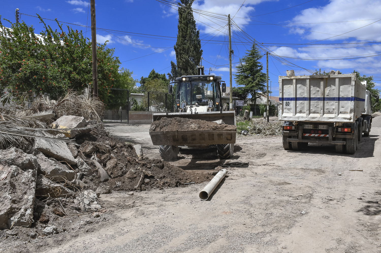 Esta demolición y excavación será aprovechada para renovar instalaciones de agua potable y cloaca, reemplazando cañerías e incorporando nuevas conexiones domiciliarias.