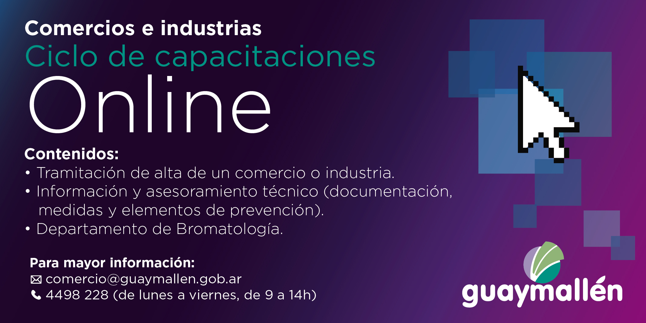 El municipio lanza una serie de capacitaciones online, destinadas a los comerciantes del departamento. El ciclo comienza el lunes 14 de septiembre y tendrá una duración de tres meses. Los interesados en participar pueden inscribirse ingresando a https://docs.google.com/forms/d/e/1FAIpQLSfzX8ty-6prvLJSL0QBZmaoCuto54oxBq_dhYVcu1OhlVibZA/viewform?usp=sf_link.