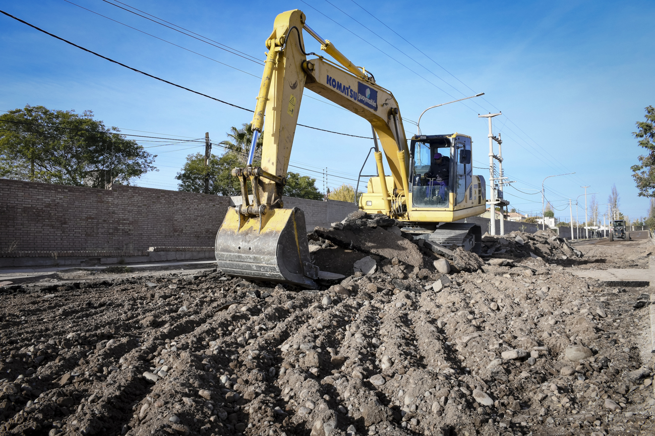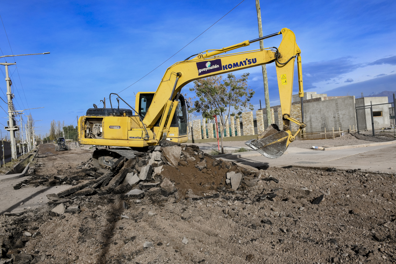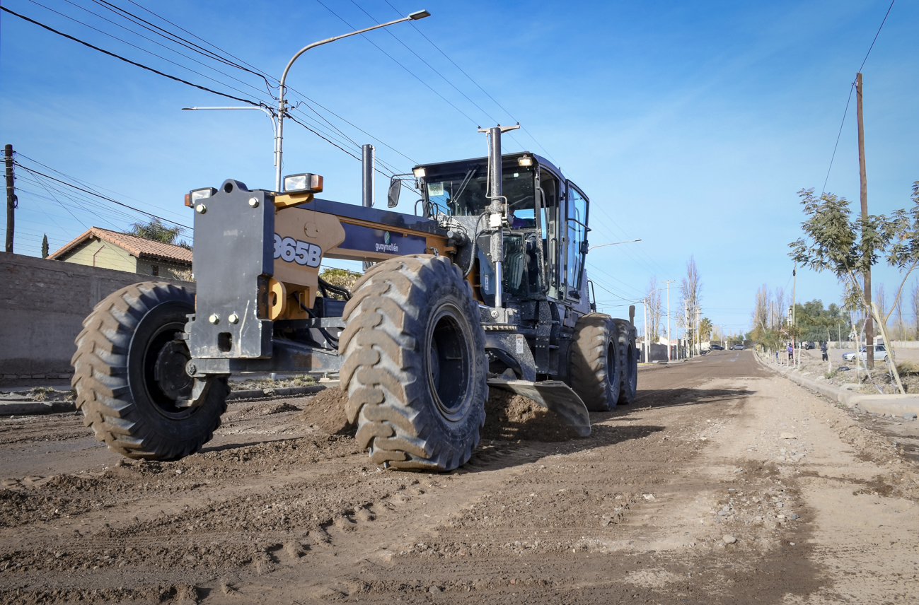 La Municipalidad de Guaymallén dio inicio a la Etapa 36 de intervenciones urbanas. En este marco comenzó el movimiento de suelo sobre calle Estrada, entre Gutiérrez y Aramburu. Se trata de 250 metros lineales donde, luego de finalizar con esta tarea, se aplicará una capa de imprimación adhesiva sobre la que colocará una capa de concreto asfáltico en caliente.