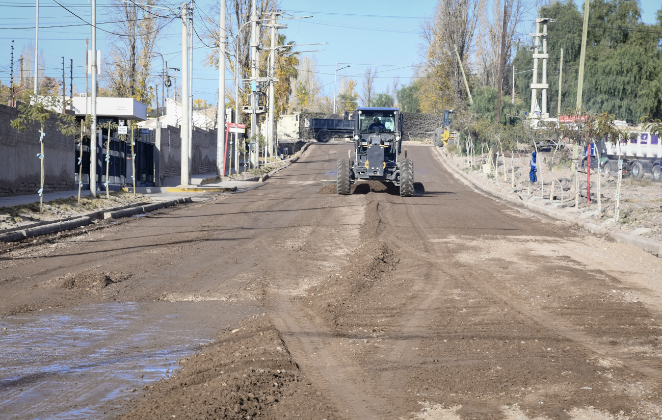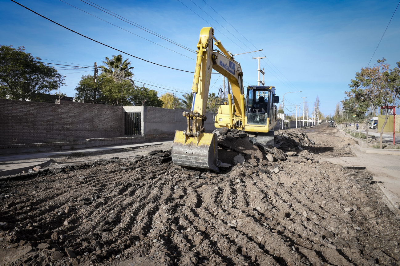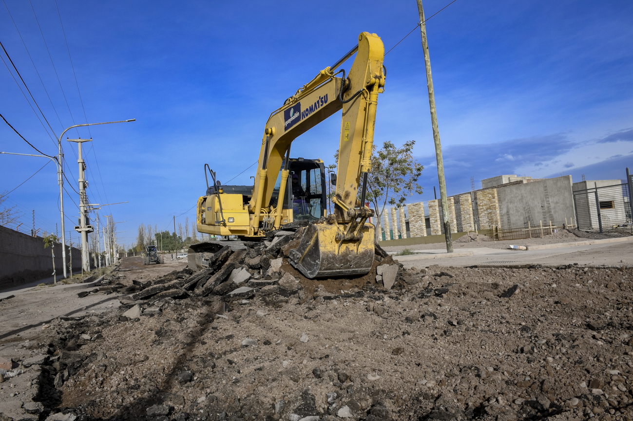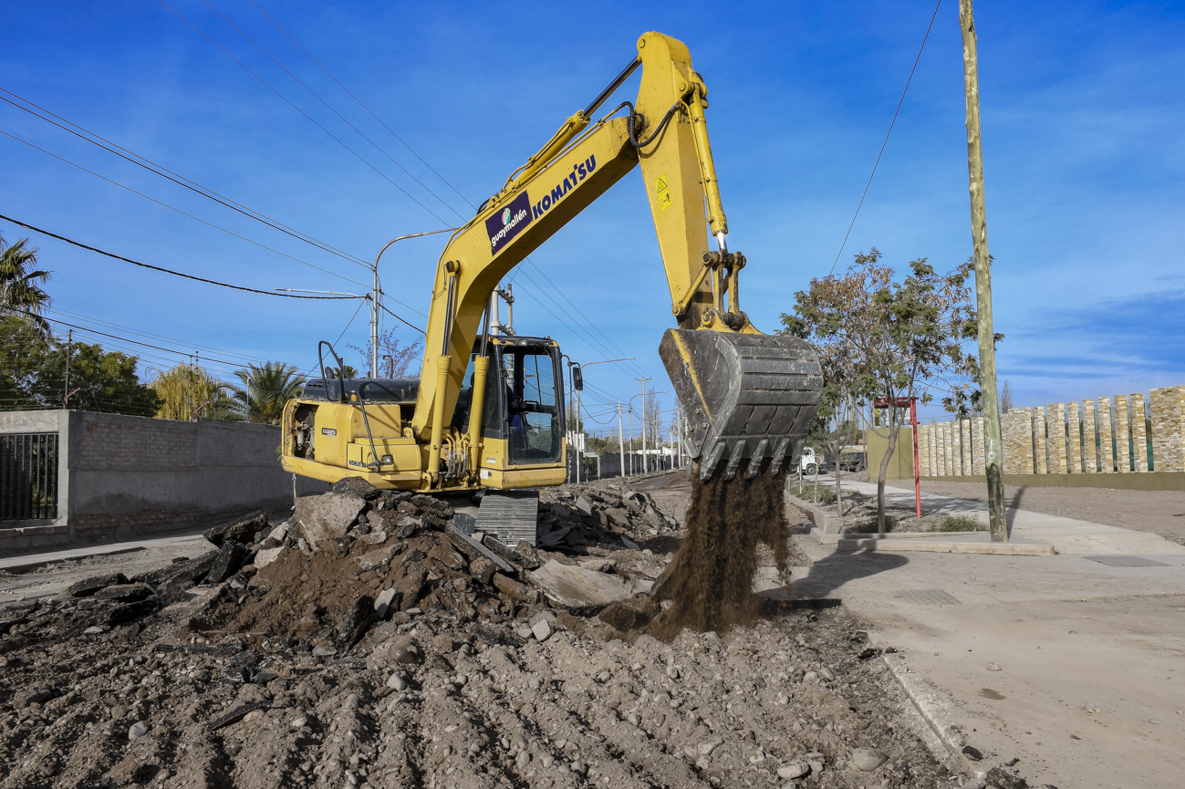 La Municipalidad de Guaymallén dio inicio a la Etapa 36 de intervenciones urbanas. En este marco comenzó el movimiento de suelo sobre calle Estrada, entre Gutiérrez y Aramburu. Se trata de 250 metros lineales donde, luego de finalizar con esta tarea, se aplicará una capa de imprimación adhesiva sobre la que colocará una capa de concreto asfáltico en caliente.
