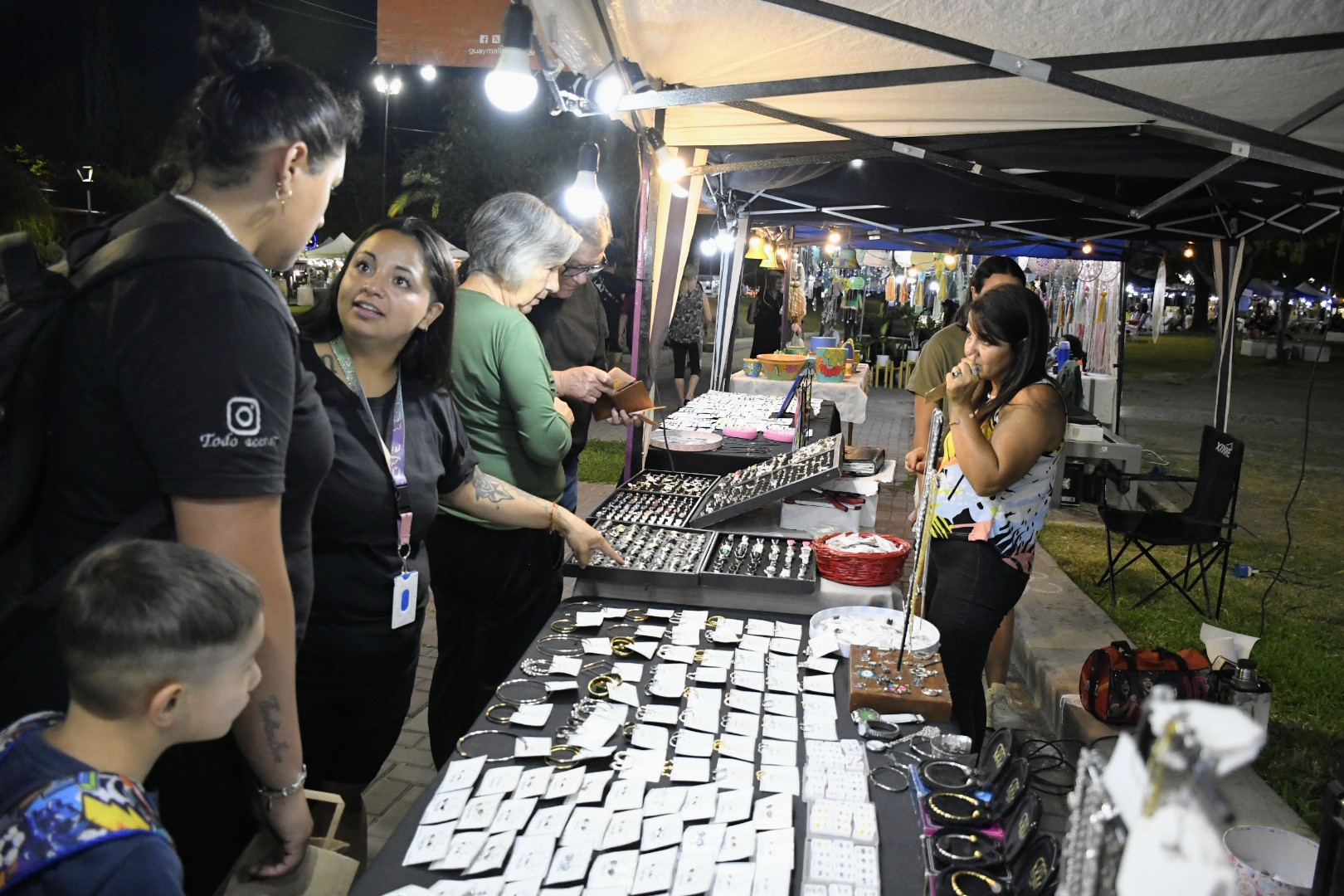 Así como sucedió la primera noche, nuevamente este sábado, el espacio verde de Villa Nueva se colmará, de la creatividad de artesanos y emprendedores. Con una amplia oferta que le permitirá a los vecinos comprar piezas únicas: calzado, marroquinería, cuchillería, bazar, juguetes, bombones, dulces, cremas naturales y mucho más.