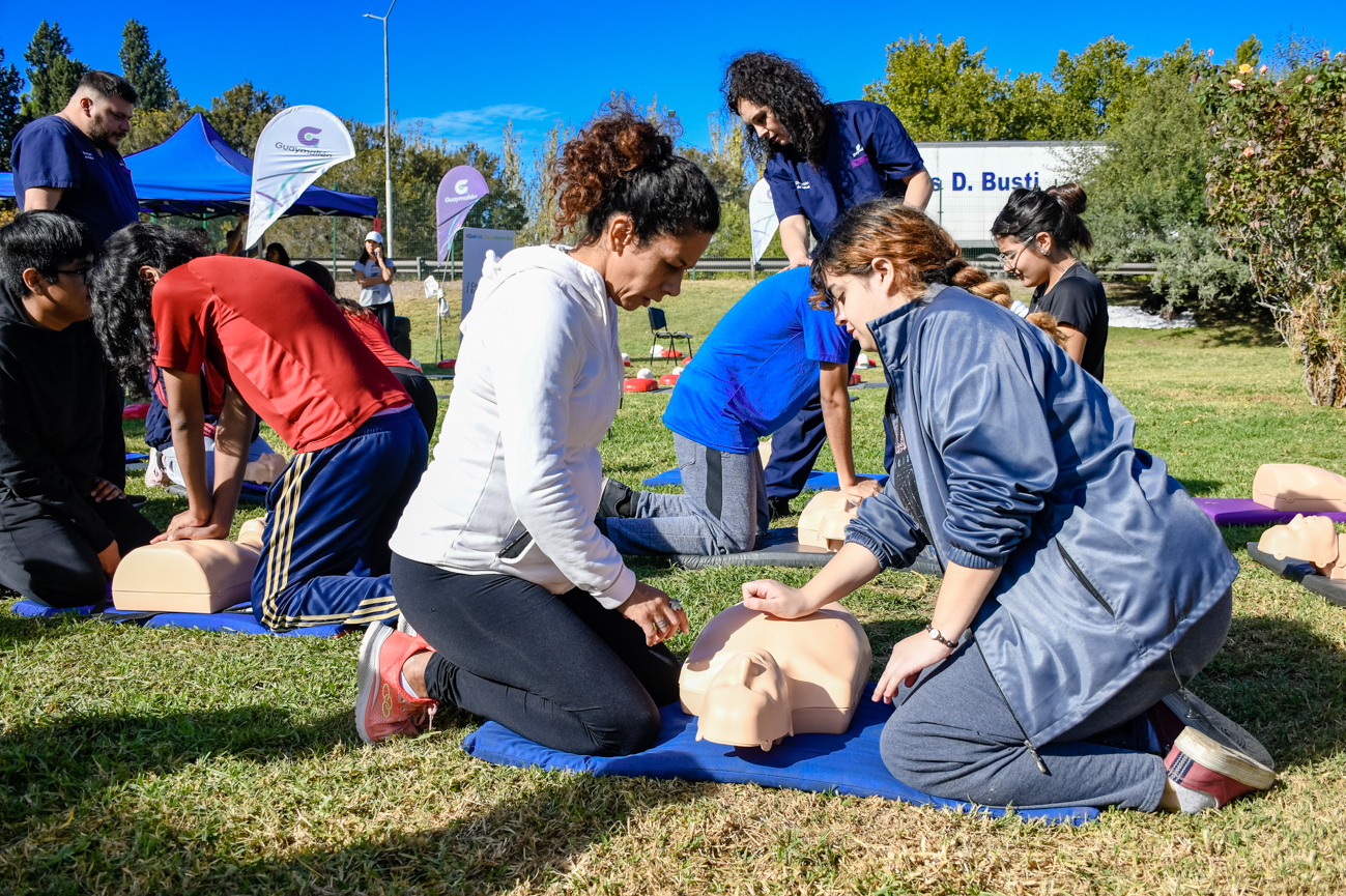 La Estación Saludable se pobló de jóvenes que fueron rotando en grupos por las distintas estaciones en las que se organizaron las actividades. En cada estación los chicos aprendieron técnicas de reanimación cardiopulmonar, maniobra de Heimlich y educación vial.