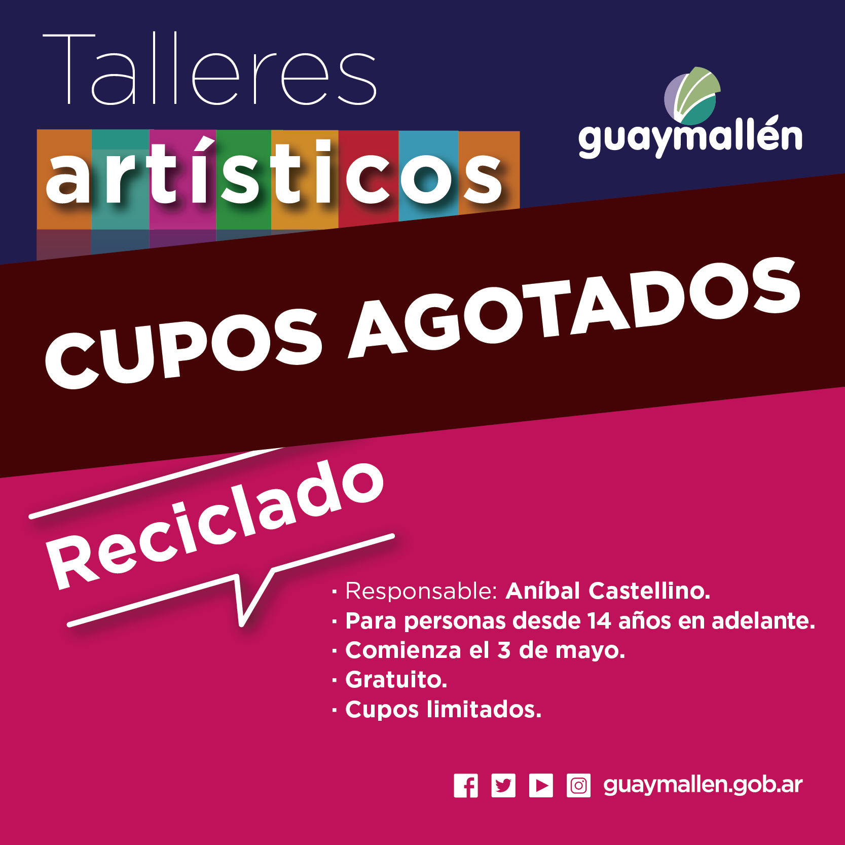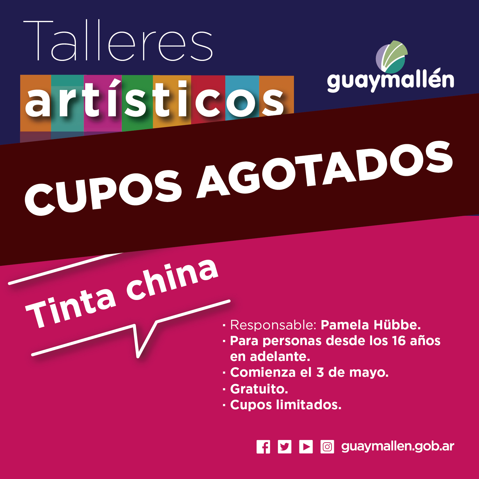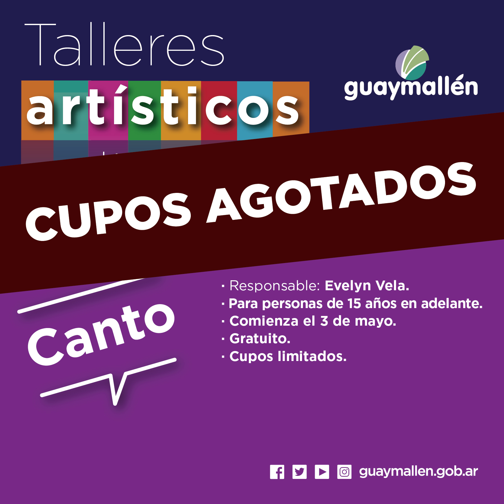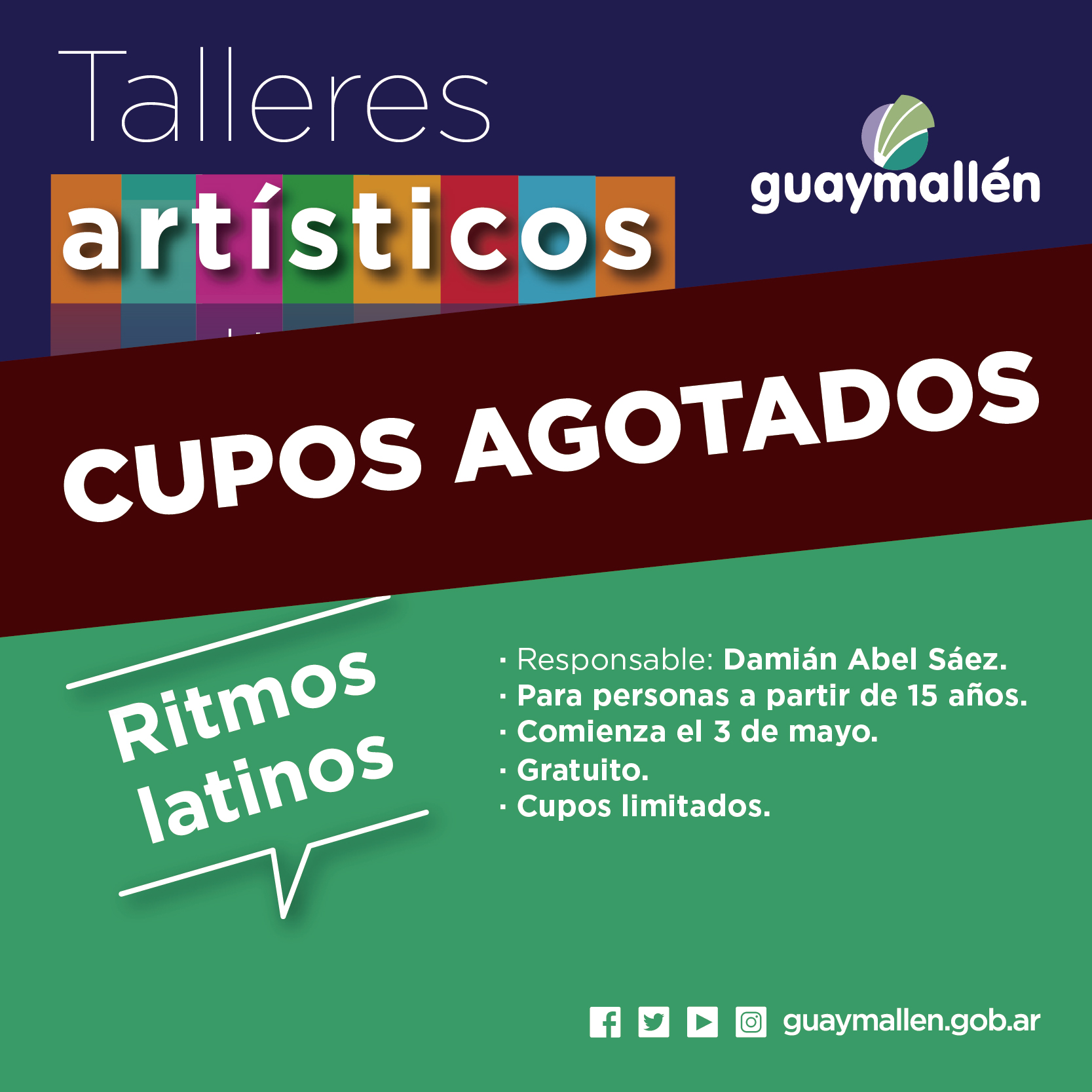 Informamos que se han completado los cupos correspondientes a los talleres gratuitos de: canto, reciclado, tinta china, y ritmos latinos.