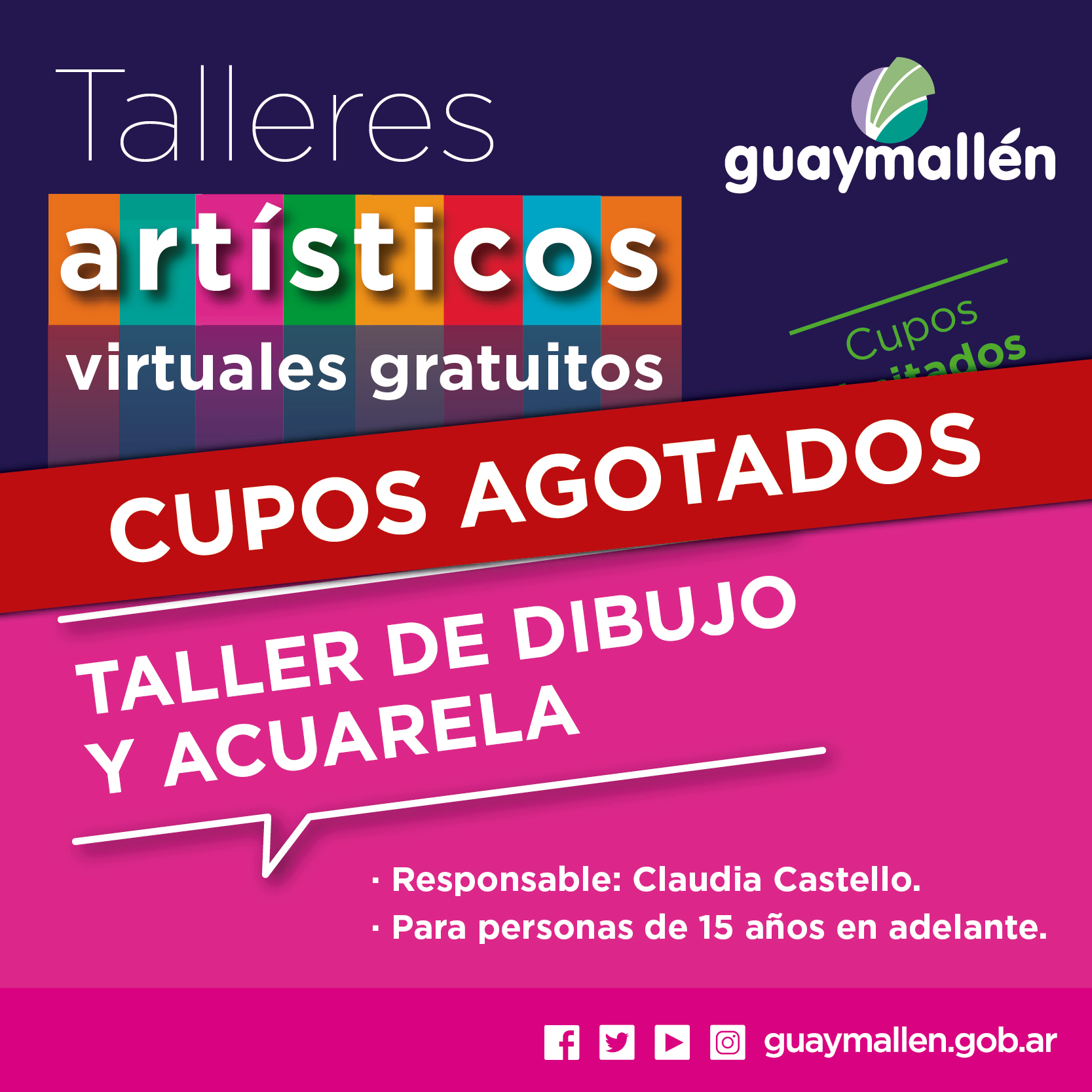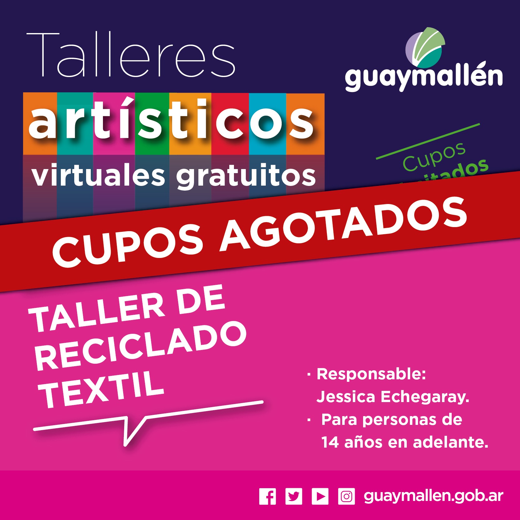 Informamos que se han completado los cupos correspondientes a los talleres gratuitos de dibujo y acuarela, reciclado textil y taller de arte para niños y niñas.