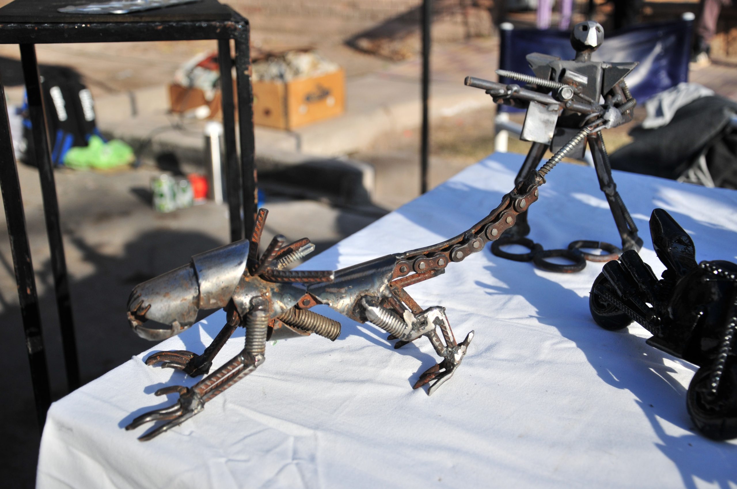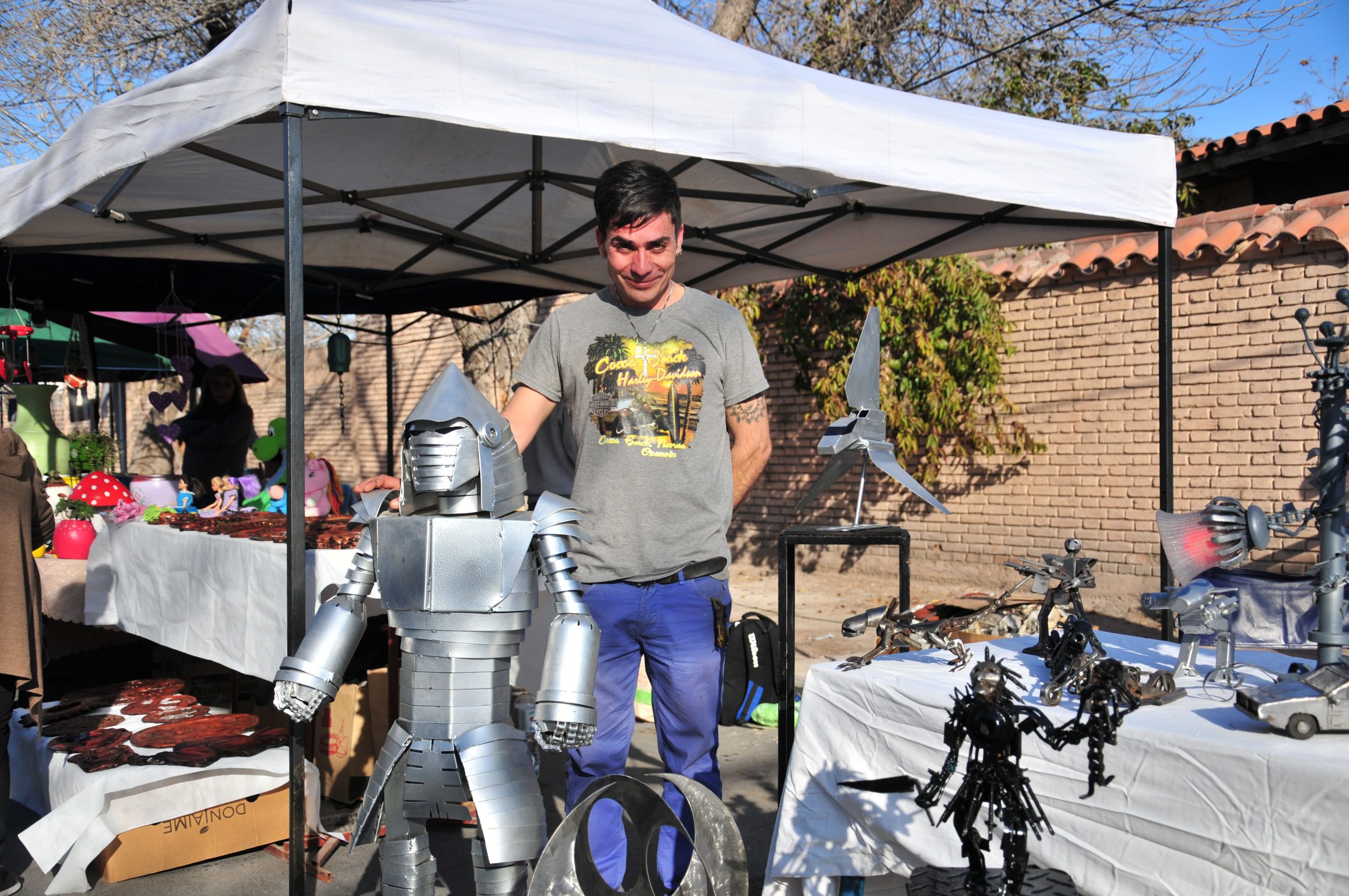 Muestras al Sol contó con la intervención en vivo de Daniel Appap, escultor mendocino que reside en Km 11. La actividad desarrollada en talleres metalúrgicos despertó su interés por creaciones propias a través de recortes, ensambles y soldaduras de chapas y diversos metales. Su obra se inspira en personajes de películas, historietas de superhéroes o en animales fantásticos que inventa, teniendo en cuenta lo que el material le propone en imágenes que visualiza y recrea. También ha realizado vehículos y motos de colección (muchas veces a pedido). Cuenta con esculturas de grandes dimensiones y otras de menor tamaño, con pequeños elementos o partes de maquinarias. Vale recordar que Daniel forma parte del plantel de herreros del Municipio de Guaymallén.
