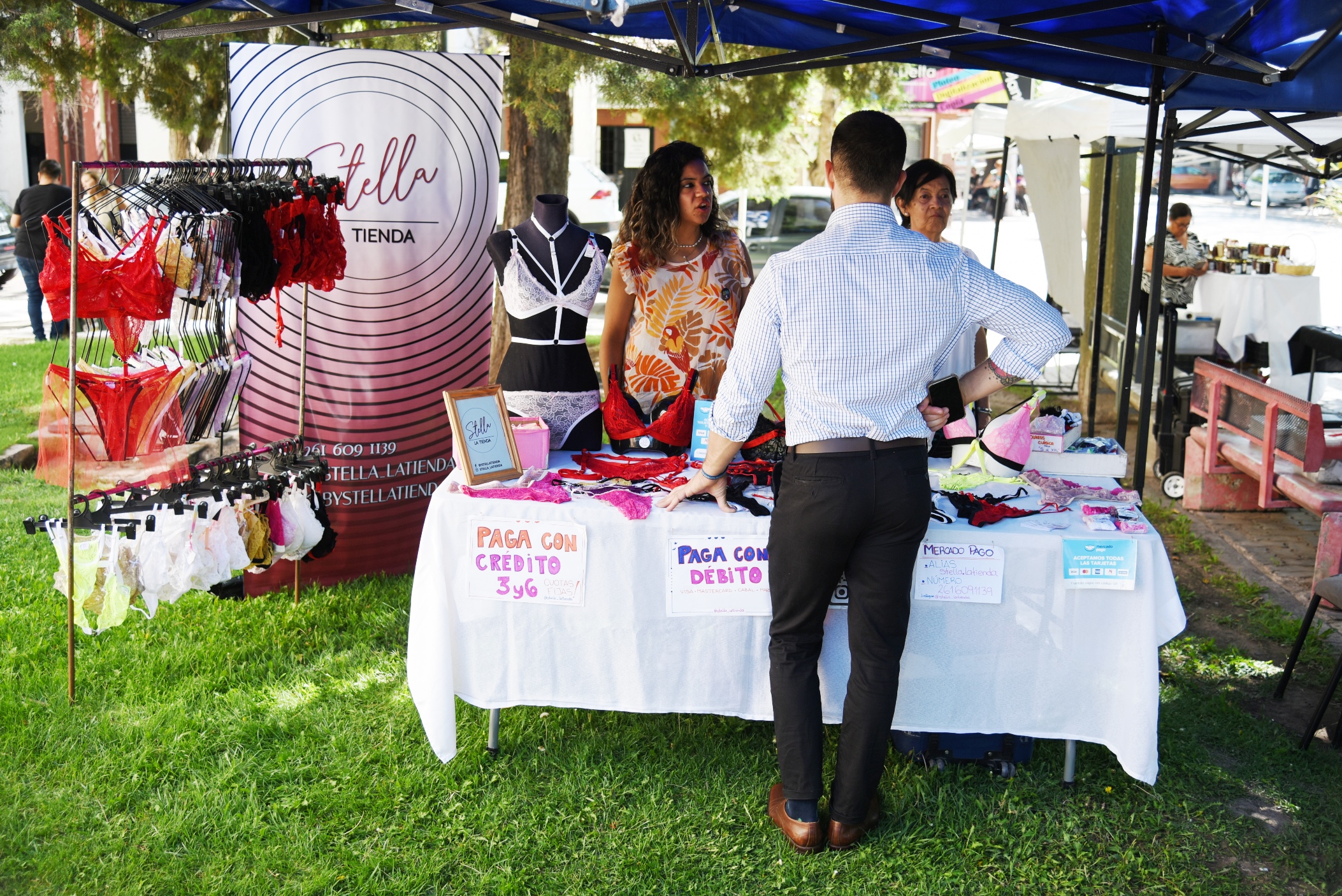 Frente al edificio, mujeres emprendedoras también estuvieron, con stands que exhibían los productos desarrollados por ellas. Estaba Vartolla Diseño (liderado por Antonella Sarmiento, una de las oradoras del acto oficial), Tía Clara, con sus dulces artesanales, Stella, La Tienda y Nairobi Accesorios.