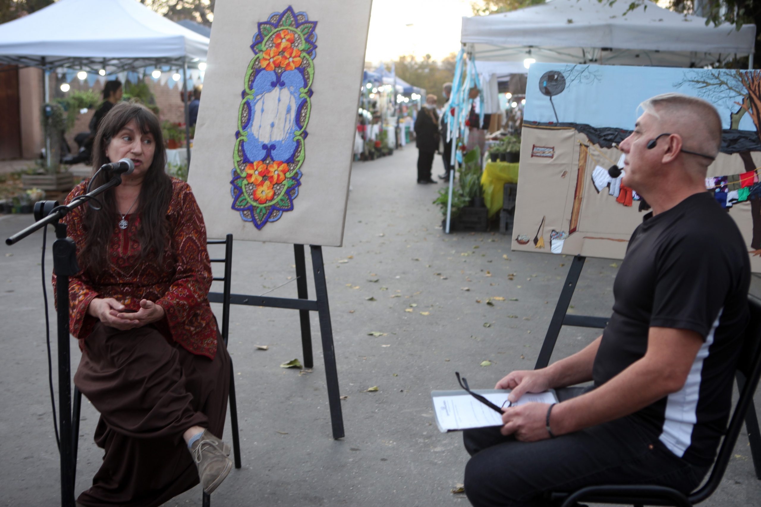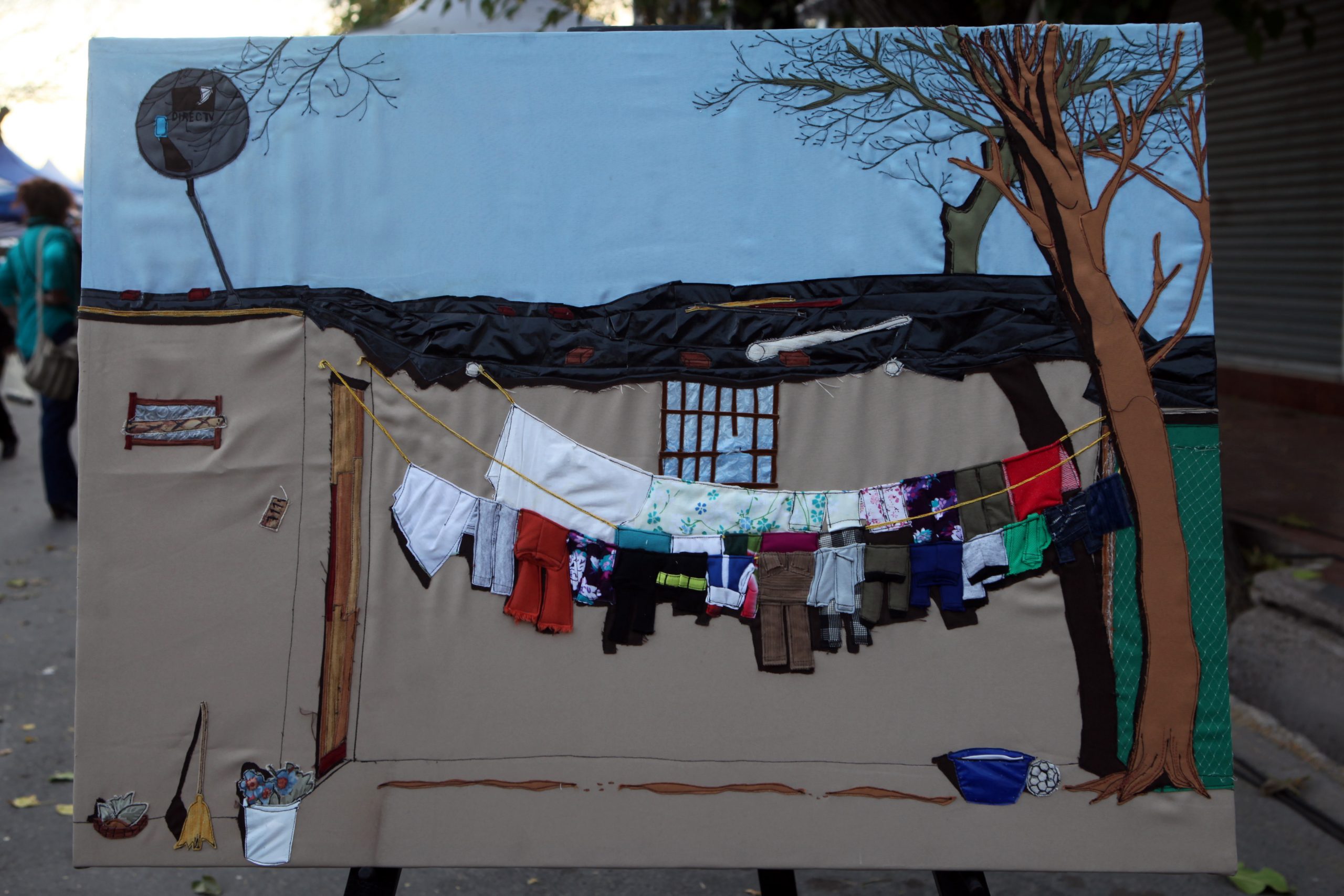 Dentro del ciclo “Muestras al sol”, la artista visual Susana Rivarola captó la atención del público mediante una intervención textil en vivo para compartir su ingeniosa producción. Vale recordar que Susana nació en la provincia de Córdoba en 1959 y, a muy temprana edad, se afincó en Mendoza. En 1979 comenzó sus estudios de Artes Plásticas en la UNCuyo. Paralelamente, se dedicó a la danza y al teatro, lo que la llevó a incursionar en el diseño y la realización de utilerías, vestuarios y escenografías. Su obra abarca distintos formatos y materiales, entre los que se pueden encontrar semillas, bordados, pinturas, tapices, cuentos en tela, paños de mostacilla y muñecas tejidas.