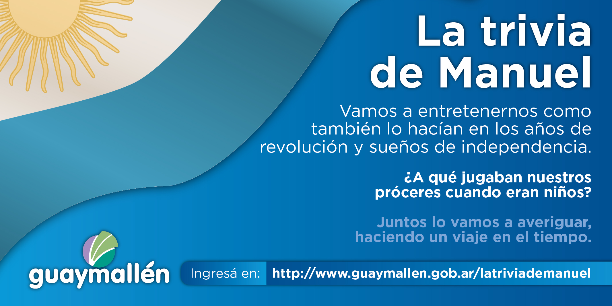 La primera trivia será sobre el general Manuel Belgrano, creador de la bandera nacional. Para participar, solo es necesario ingresar en el siguiente link https://www.guaymallen.gob.ar/latriviademanuel/.