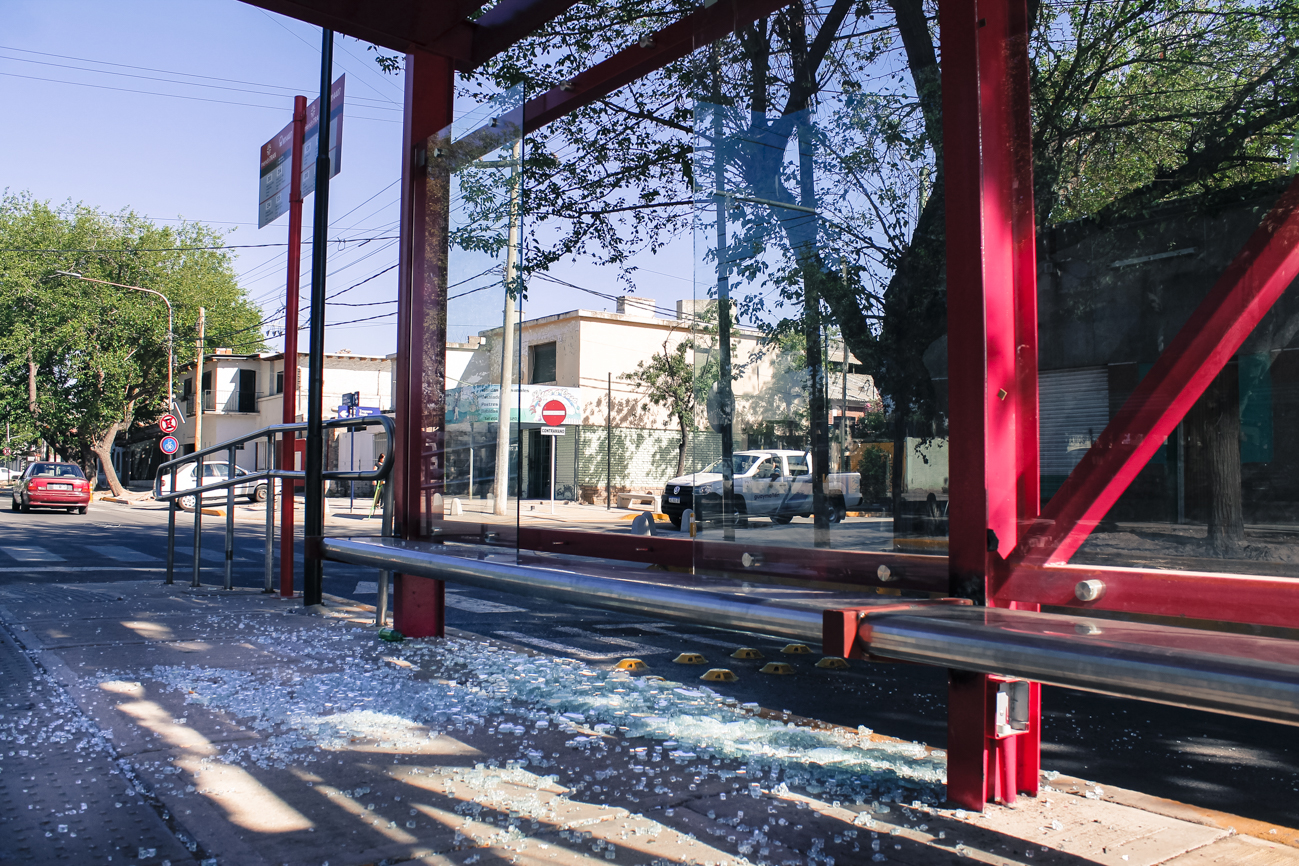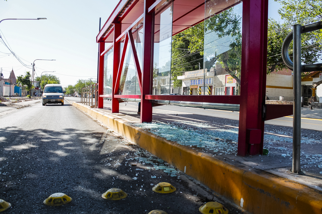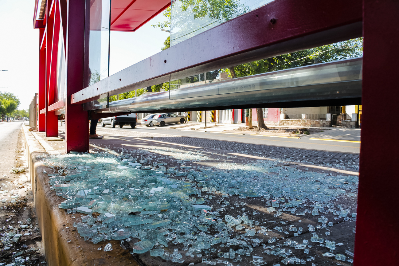 El primero ocurrió la semana pasada, a la altura de las calles Tropero Sosa y Godoy Cruz al oeste, donde se robaron un vidrio templado del apeadero recientemente construido para resguardar a los usuarios de transporte público de pasajeros.