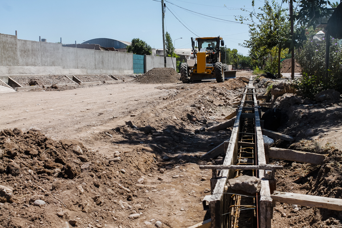 Parte de la etapa 17 del Plan de Mejoramiento de Drenajes que ejecuta la Municipalidad de Guaymallén alcanza a las calles de la zona oeste del distrito Capilla del Rosario, donde se construyen drenajes complementarios a la intervención compleja que se realiza en calle Tirasso.