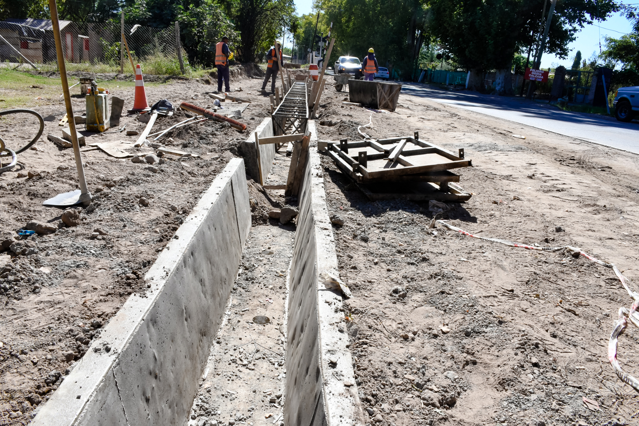 La obra se complementa, paralelamente, con la construcción de nuevas cunetas con cordones y banquinas, todo revestido en hormigón; más alcantarillas, puentes peatonales, puentes domiciliarios, veredas y remodelación de esquinas sobre el sector Oeste de Mathus Hoyos, en el tramo comprendido entre calles Aristóbulo del Valle y Lisandro de la Torre.