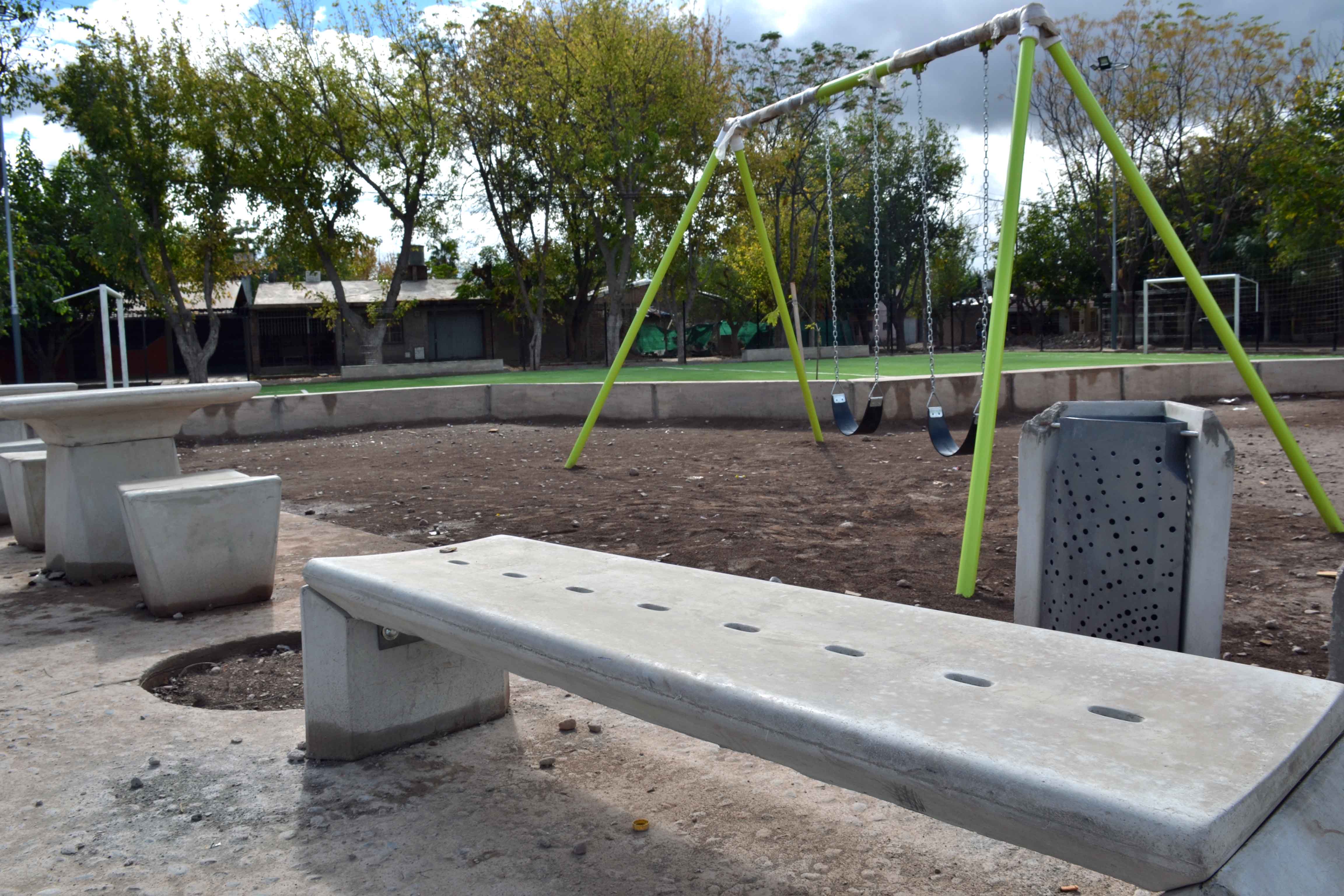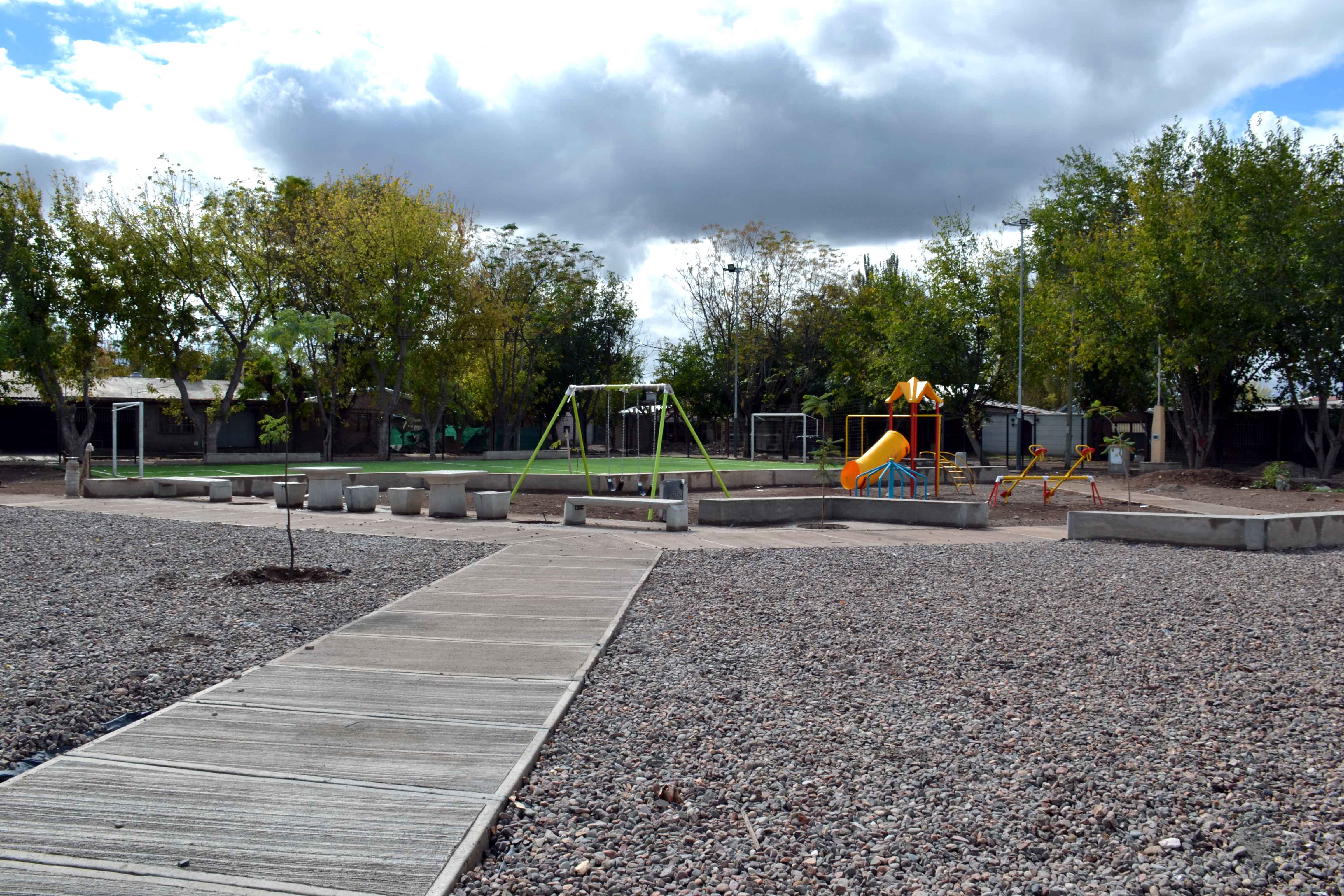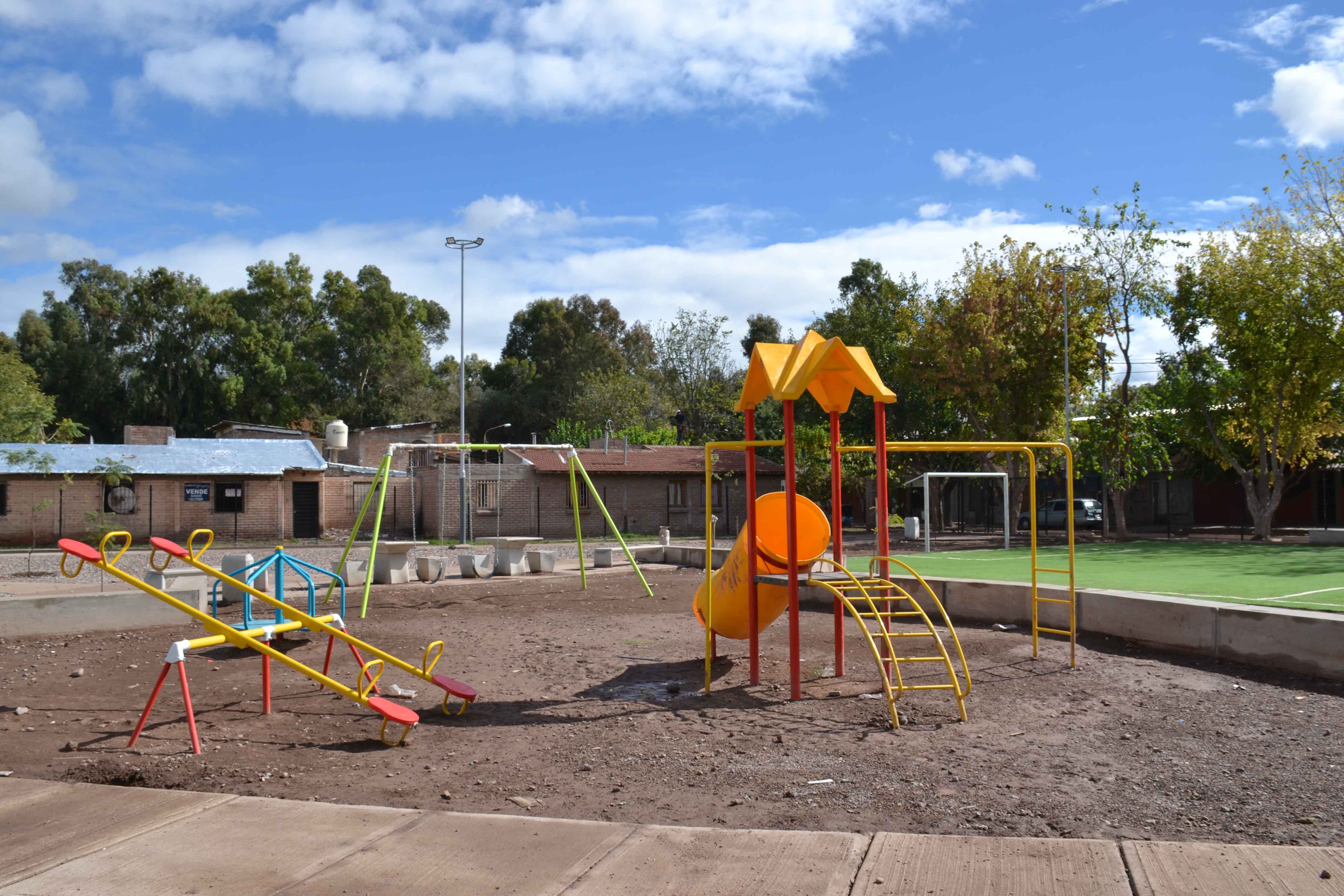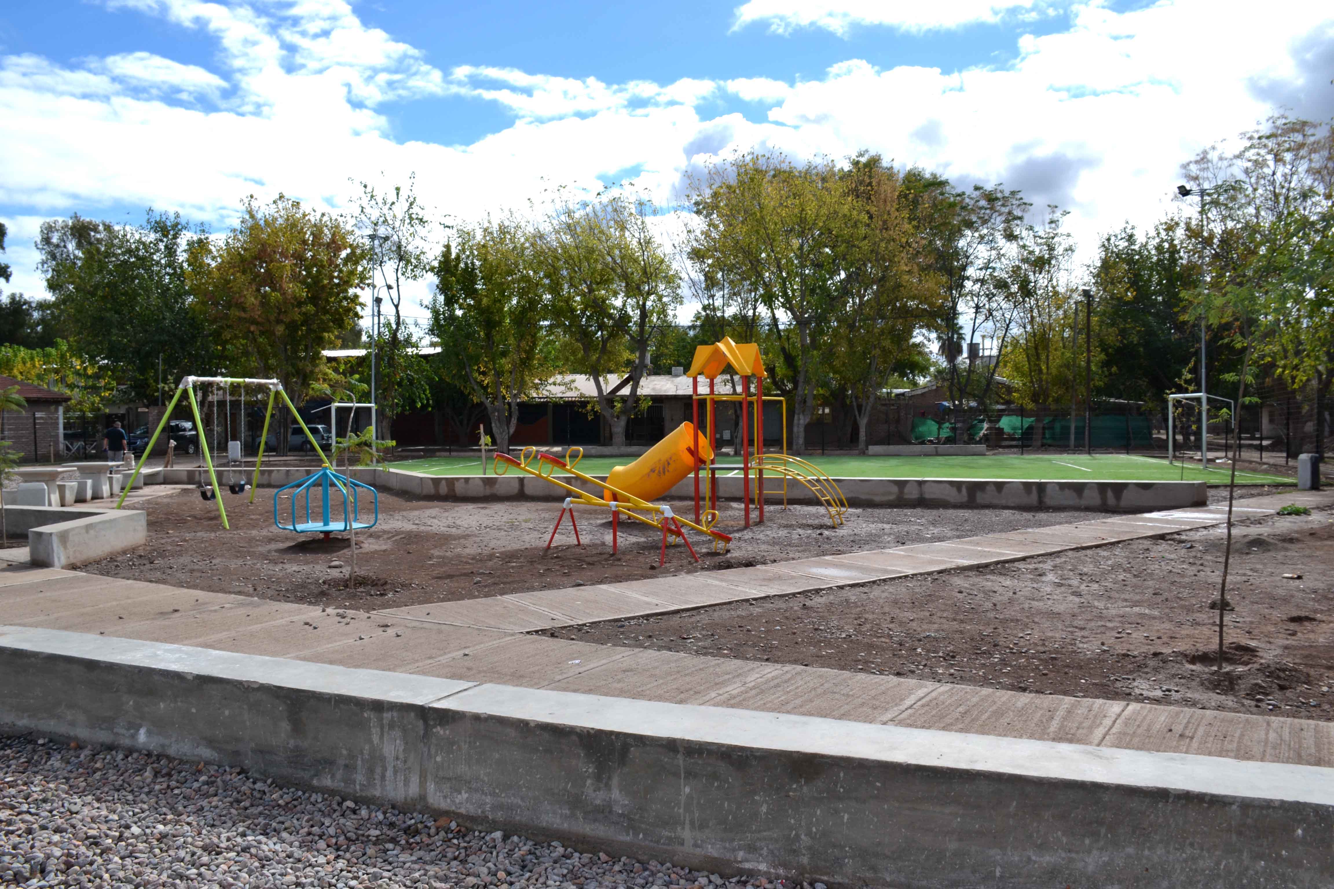 Lo que antes era un terreno baldío, utilizado como “potrero” por una escuelita de fútbol que funciona en el barrio Mi Casa, toma la forma de un moderno espacio verde. Fue cerrado, ya se colocó parte del mobiliario y los juegos infantiles. Además, cuenta con un campo de fútbol de césped sintético, para que los chicos puedan seguir practicando el deporte en el lugar.