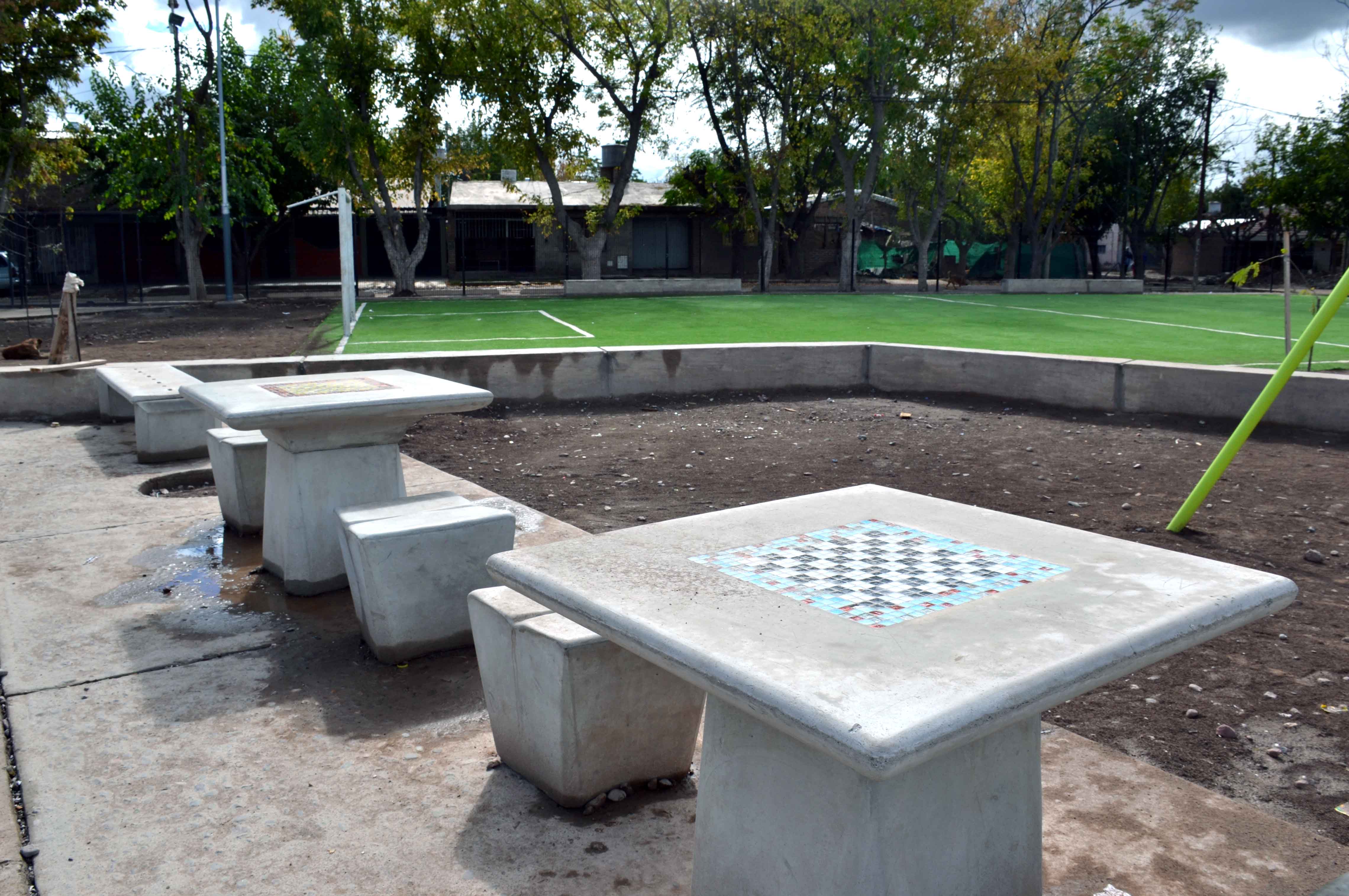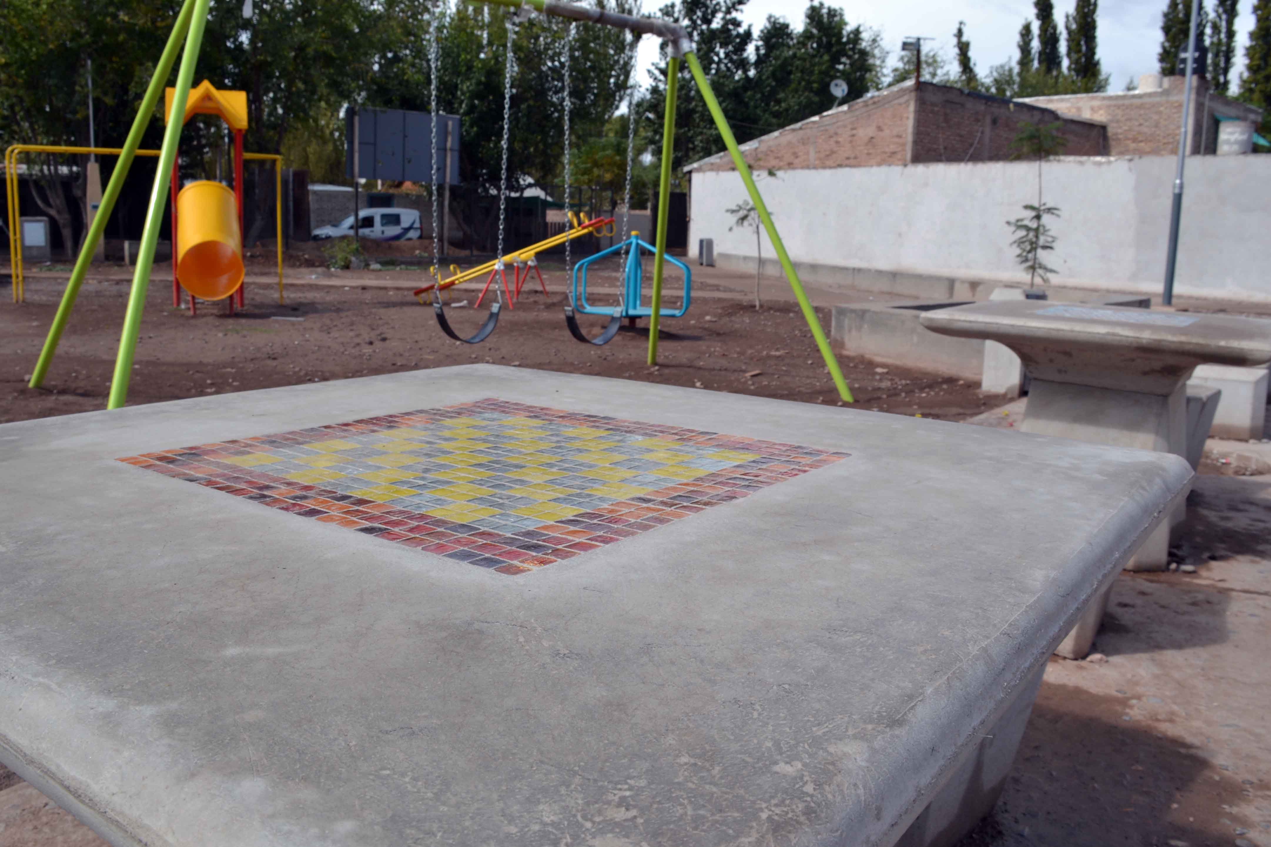 Los avances en el predio de 1.500 metros cuadrados, ubicado entre las calles 3 y 5, son notorios. Los modernos bancos y mesas con asientos terminados en hormigón, los coloridos juegos infantiles, los senderos internos y las veredas perimetrales han dejado atrás la imagen de lo que era un baldío de tierra.