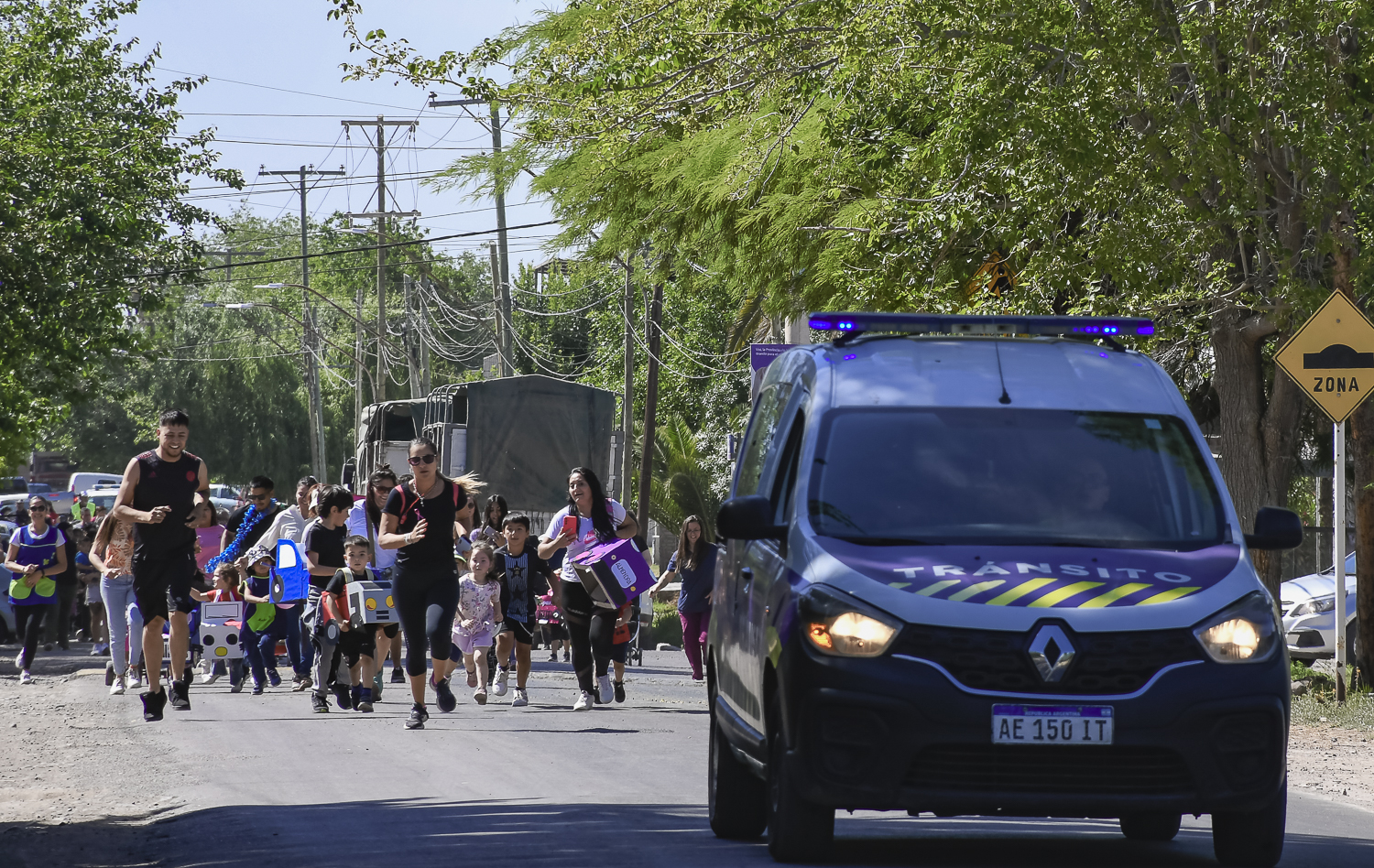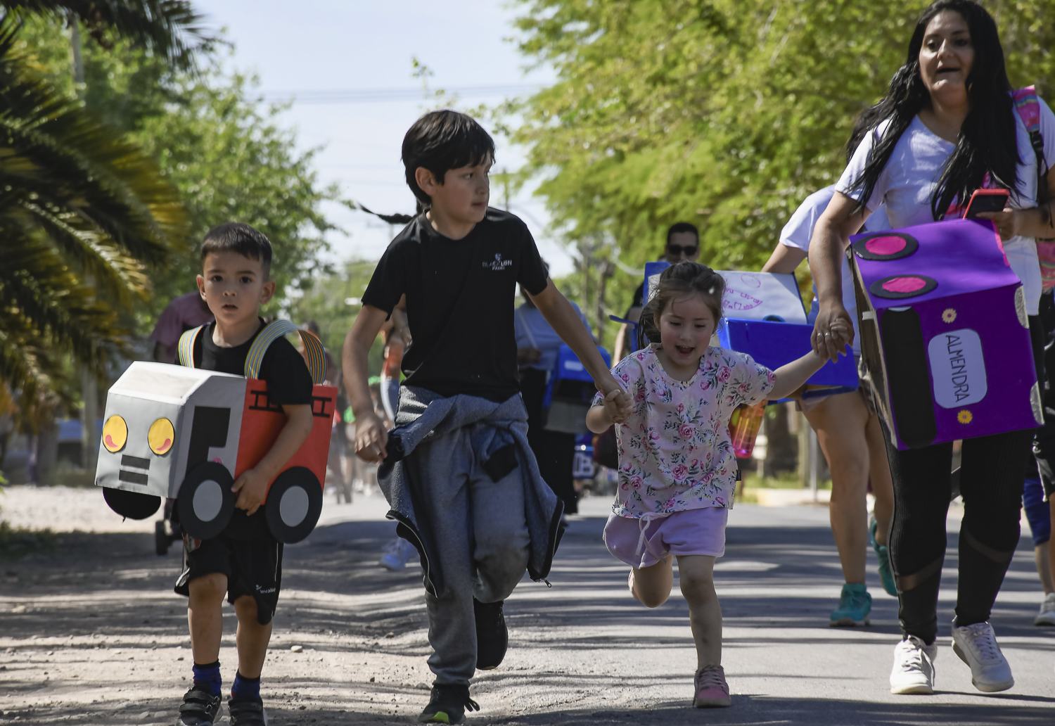 El recorrido fue corto, apenas una vuelta a la manzana. Pero los chicos pusieron el empeño como si fuera una ultramaratón y al final recibieron medallas por su participación.