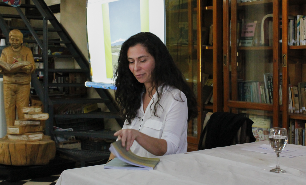 La doctora Cristina Prieto Olavarría presentó este jueves su libro “Huarpe” (Arqueología e historia de un pueblo vivo), en la biblioteca municipal Almafuerte.