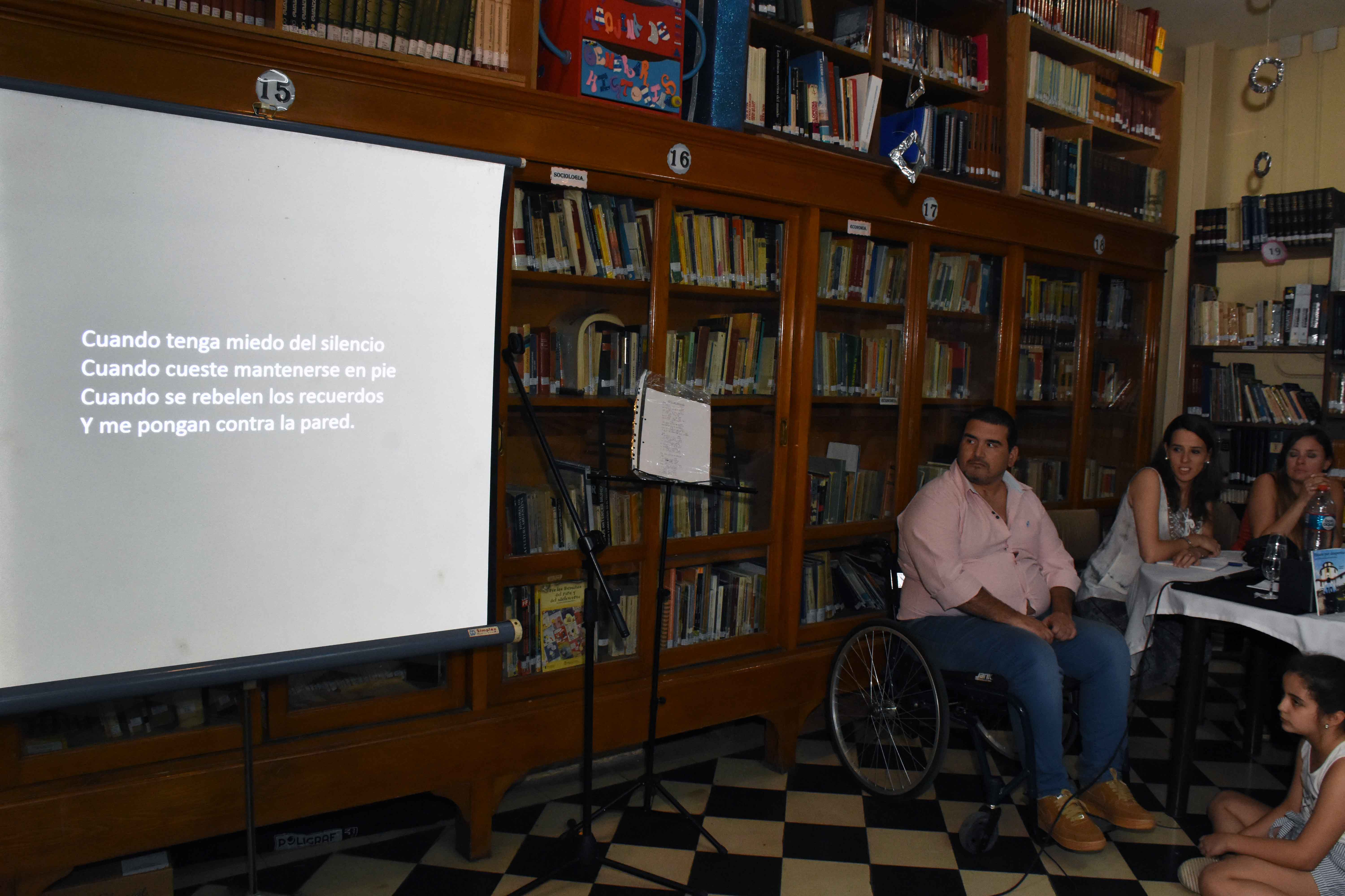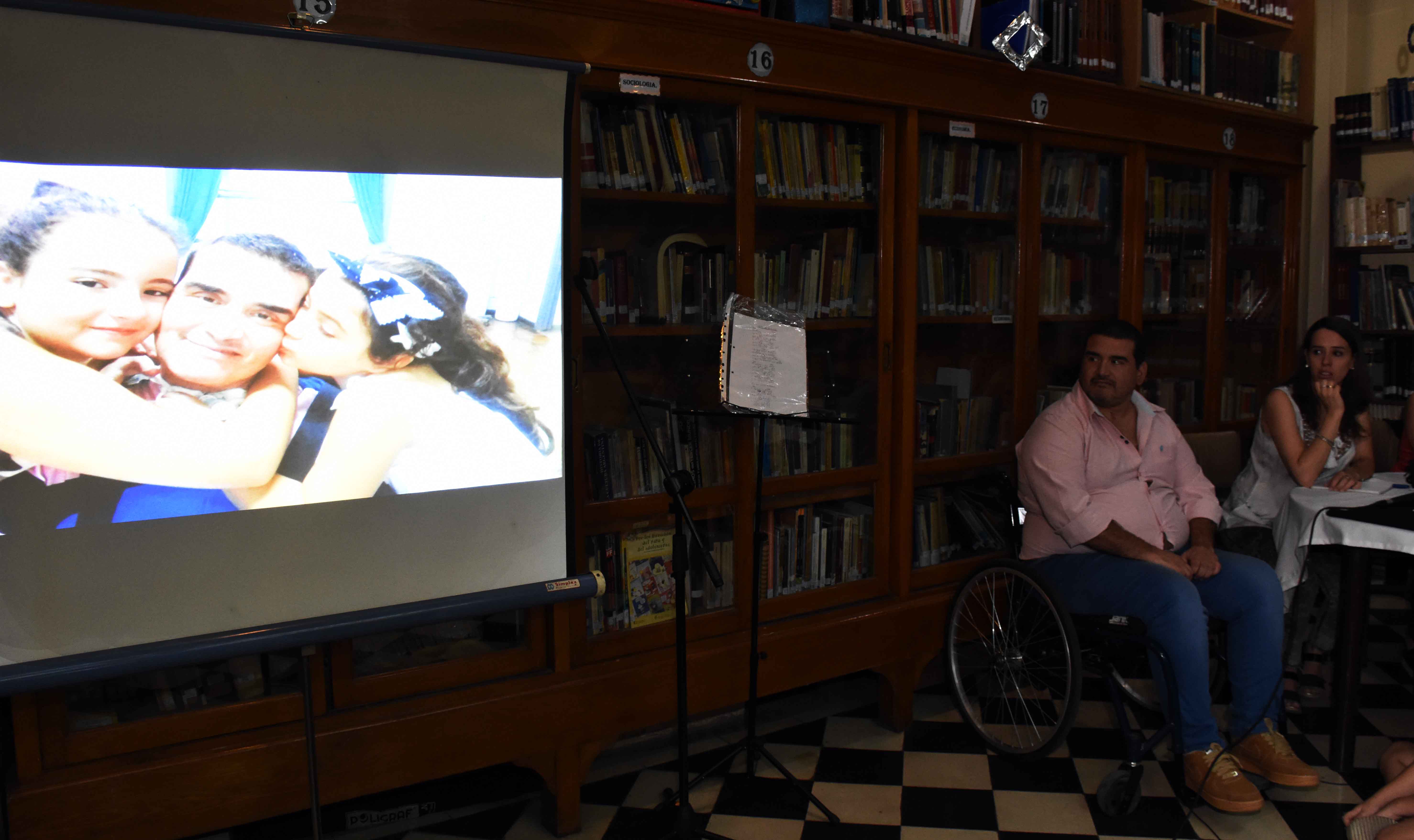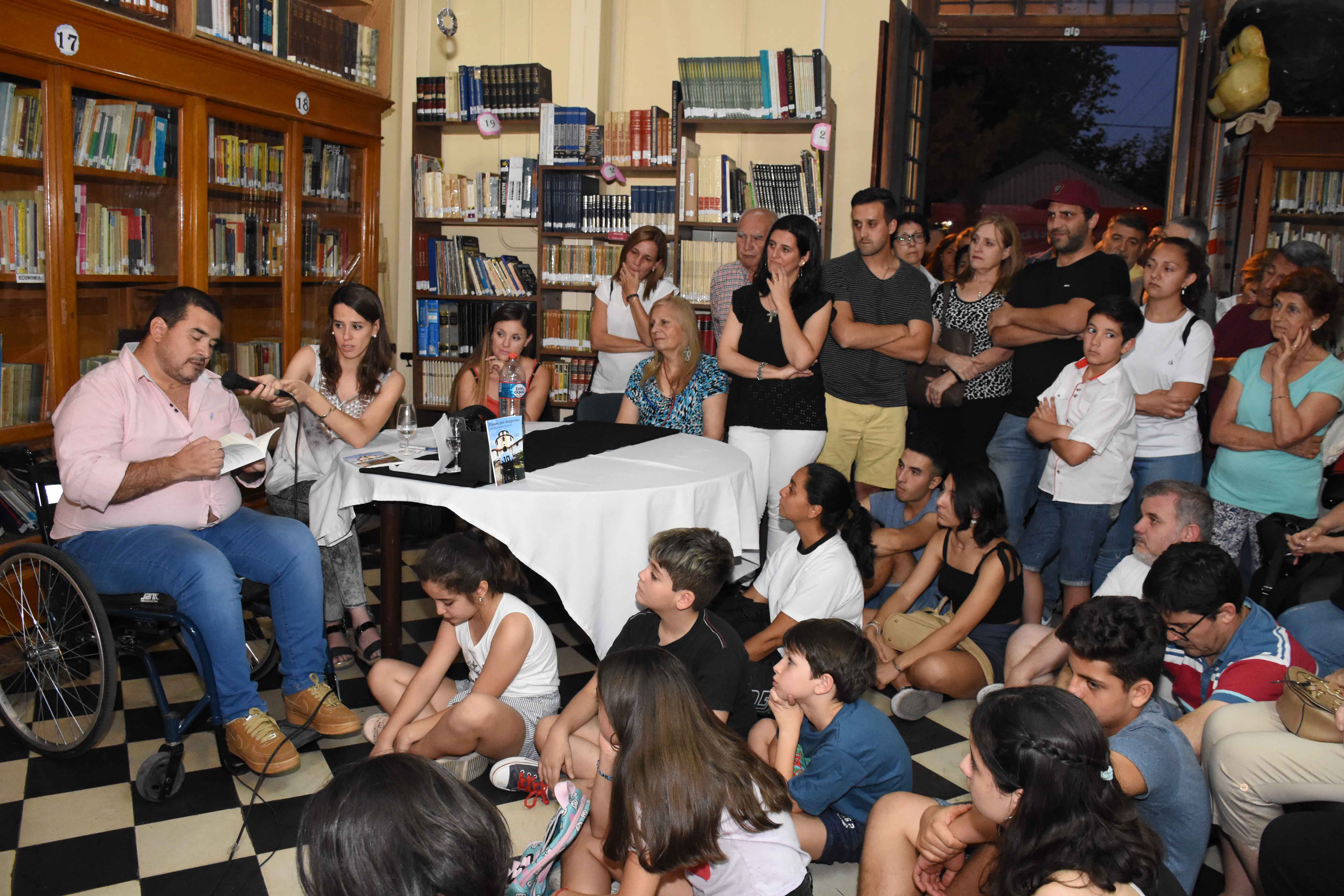 Rodeado de familiares y amigos, Claudio Molina, un verdadero sobreviviente del síndrome de Guillain Barré, presentó su obra testimonial y esperanzadora en la biblioteca municipal Almafuerte.