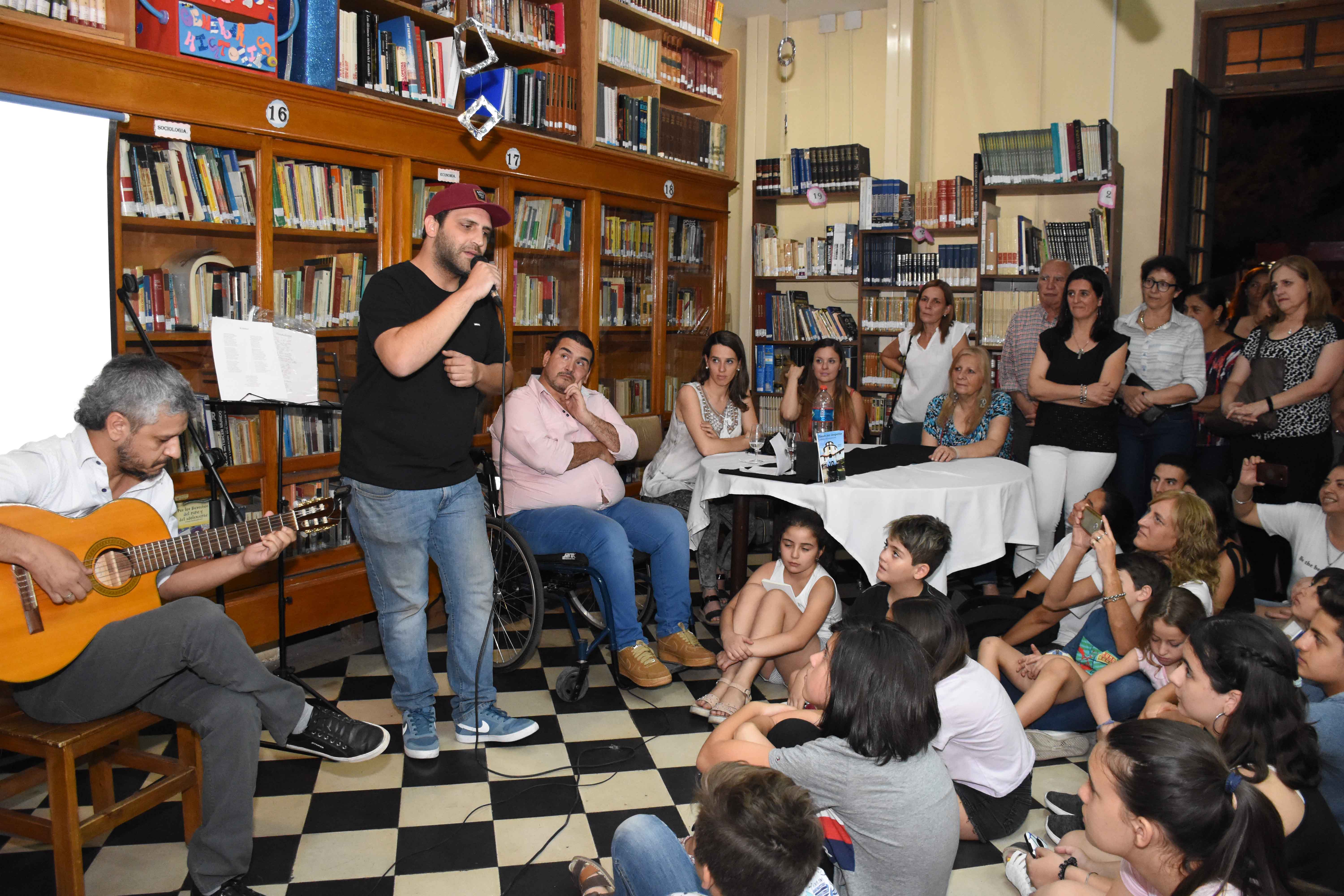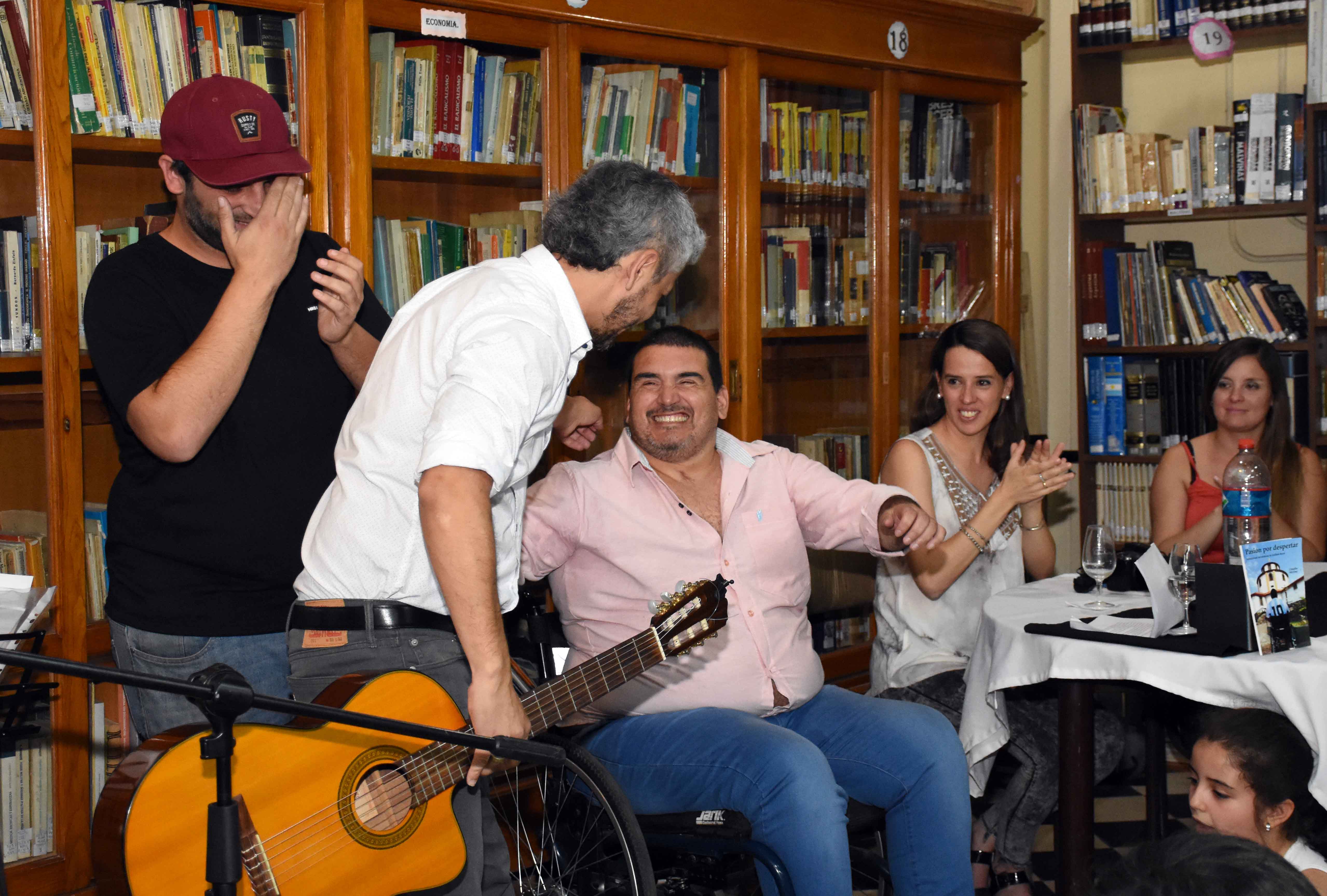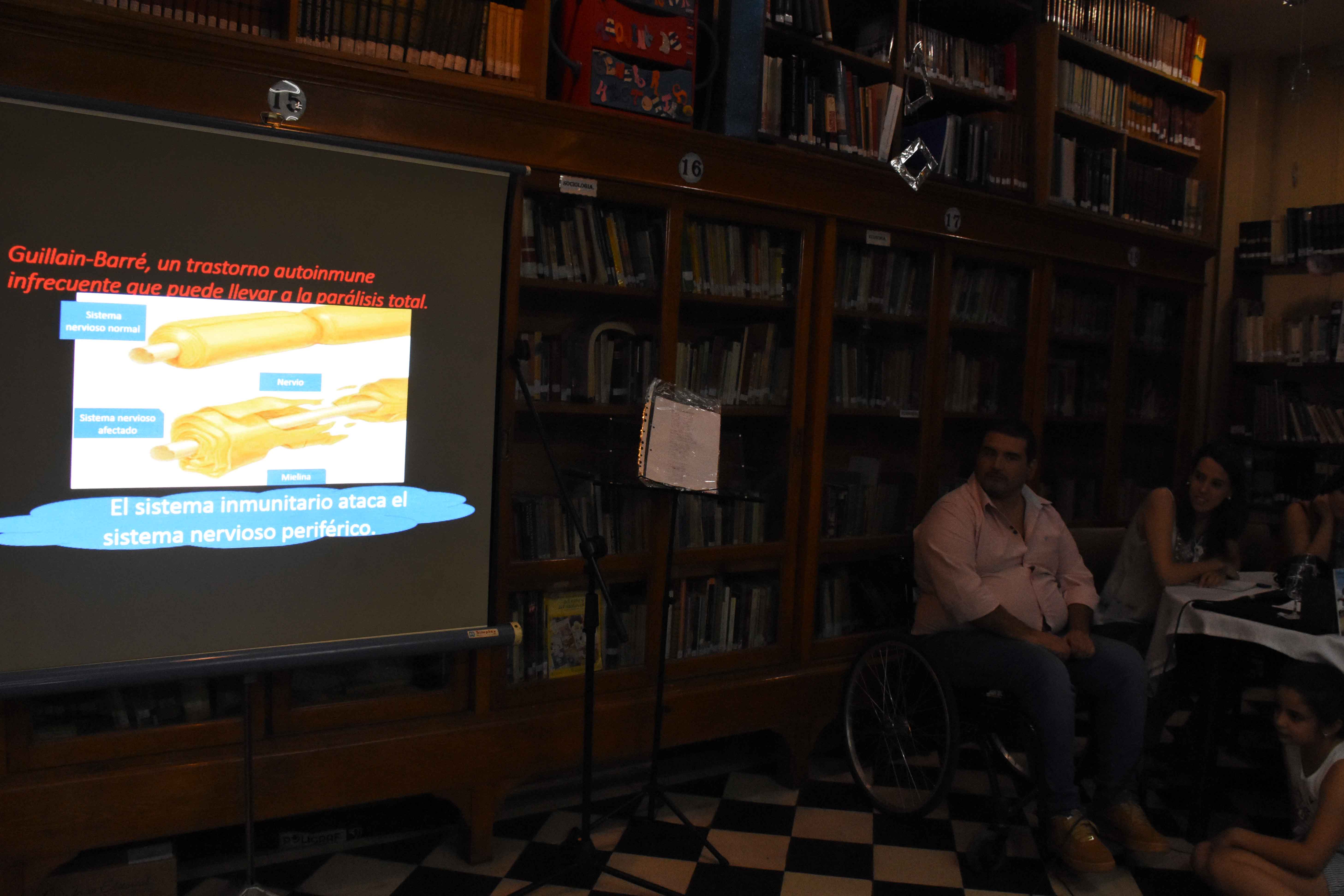 Rodeado de familiares y amigos, Claudio Molina, un verdadero sobreviviente del síndrome de Guillain Barré, presentó su obra testimonial y esperanzadora en la biblioteca municipal Almafuerte.
