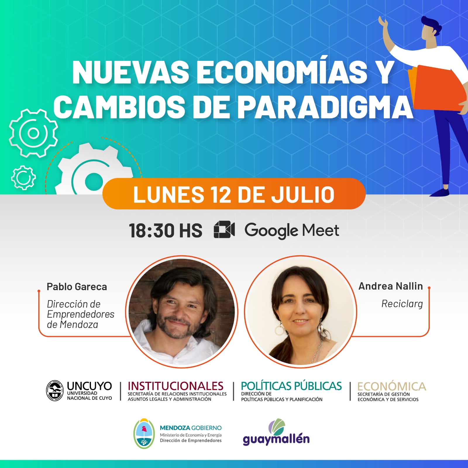 En esta oportunidad, Pablo Gareca (Dirección de Emprendedores de Mendoza) y Andrea Nallim (Reciclarg) abordarán temáticas vinculadas a nuevas tendencias económicas, emprender con propósito, empresas de triple impacto, economía circular, movimientos y tendencias mundiales que vienen transformando las formas de producción y de venta.