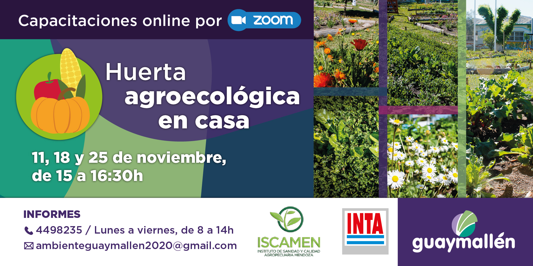 El municipio invita a participar del segundo encuentro de «Huerta agroecológica en casa», que se realizará este miércoles 11 de noviembre, de 15 a 16:30, a través de la plataforma digital Zoom. Ese día se abordarán temáticas referidas a siembra y trasplante, cuidados y mantenimiento de la huerta y la cosecha. Los contenidos estarán a cargo de técnicos del Instituto Nacional de Tecnología Agropecuaria (INTA); del Instituto de Sanidad y Calidad Agropecuaria de Mendoza (ISCAMEN), de la promotora de Pro-Huerta, Ana María Scollo; y personal de la comuna.