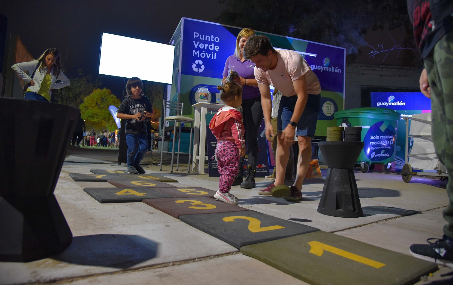 Los recuperadores urbanos y los voluntarios por la acción climática continuaron promoviendo el cuidado del ambiente con folletería, una rayuela de caucho reciclado y ecocanje.