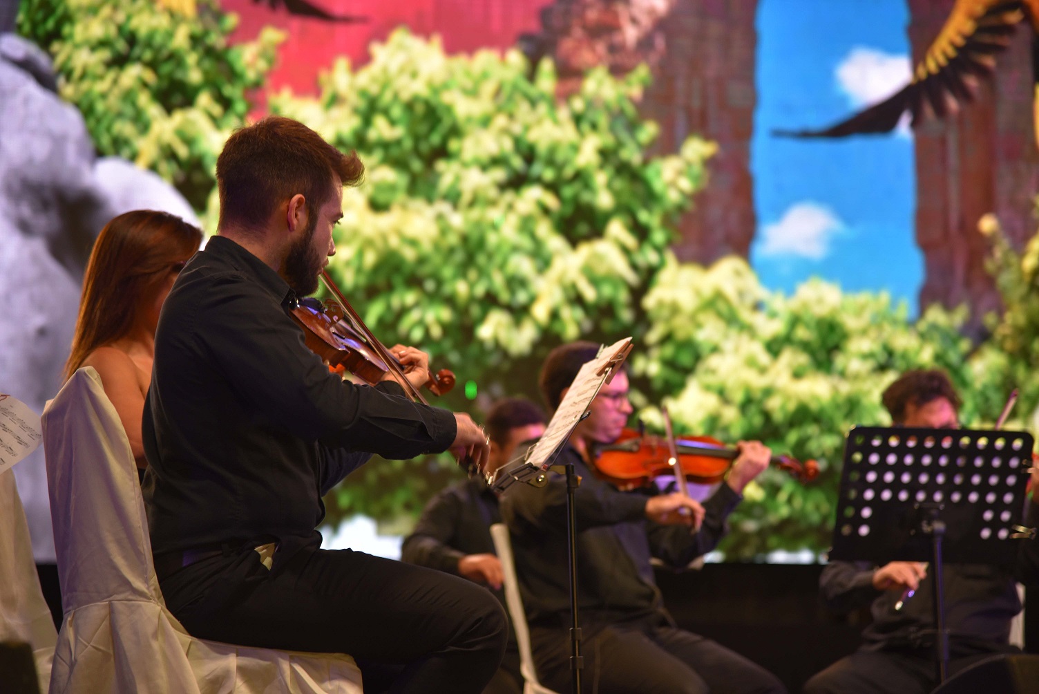 Durante la noche del sábado, en la carpa de Cultura, estuvo la artista plástica Rosana Modarelli y las escritoras Gabriela Mezzabotta y Verónica Maldonado. Además, un repertorio lírico y clásico mantuvo encendido el escenario, por el que pasaron todos intérpretes locales. La grilla abrió con el Ensamble Clásico de la Orquesta Municipal de Guitarras Tito Francia. Luego, fue el turno de la orquesta Las Estaciones y del pianista Leonardo Pittella, que dieron paso a la gala lírica de la noche. Contó con la participación de las sopranos Mariana Rodríguez, Graciela Armendariz, Jimena Semiz y Alejandra Herrera; la mezzosoprano Andrea Vaía; los tenores Marcelo Zelada y Cristian Mella; y los barítonos Rubén Caparotta y Fernando Lazari. Acompañaron el cuarteto de cuerdas formado por Igor Lara, Roger Campos, Mauro Marquet y Matías Pelli; y los pianistas Emanuel Fernández y Pablo Fascio.