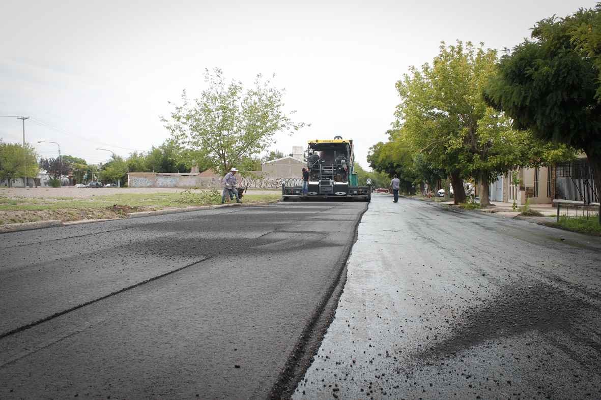 El barrio Oficiales de Policía está encuadrado entre las calles Dorrego (al oeste), Cobos (al este), Kennedy (al sur) y Moldes (al norte). En ese perímetro, se concretan las obras viales que comenzaron días atrás con el reencarpetado de calle Kennedy, de Dorrego a Cobos y continuaron esta semana sobre calle Vucetich, de Kennedy a Moldes. En ambos casos, se imprimó la superficie con material adhesivo y se aplicó luego concreto asfáltico en caliente.